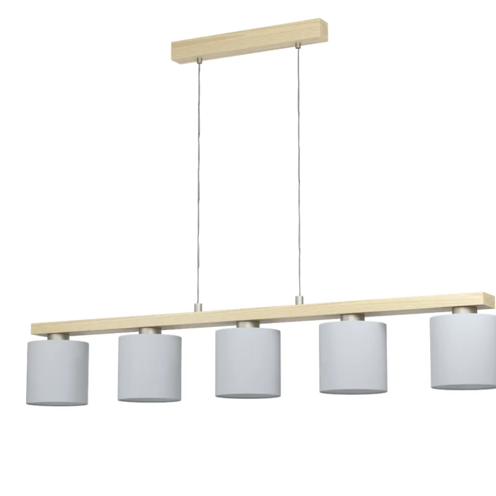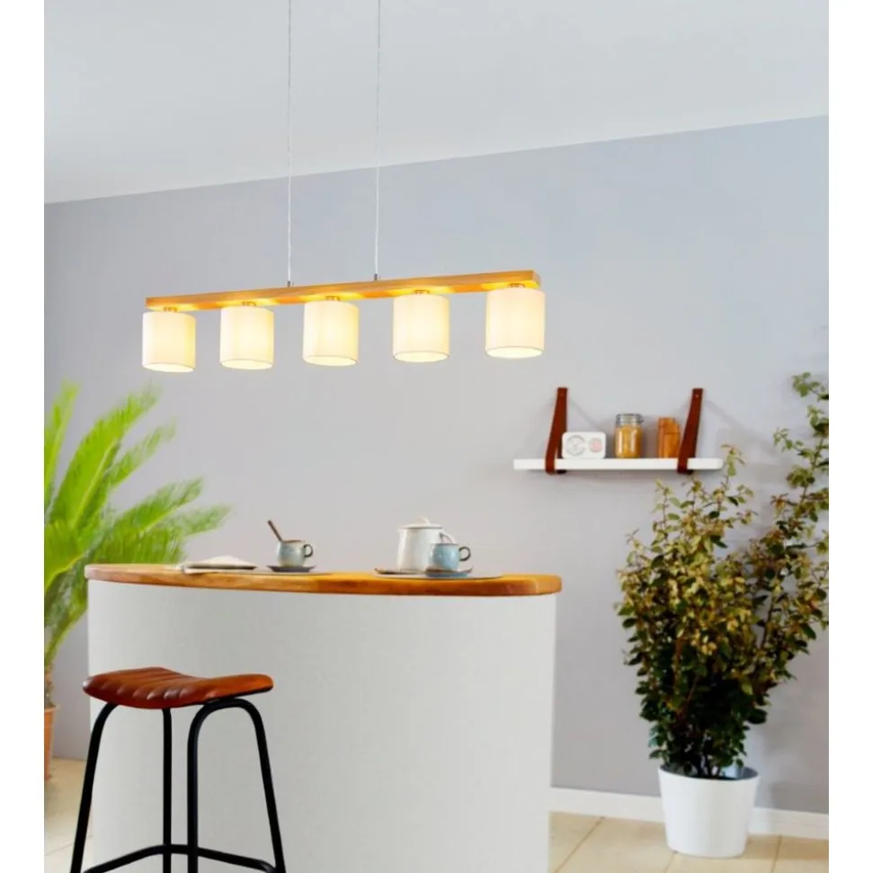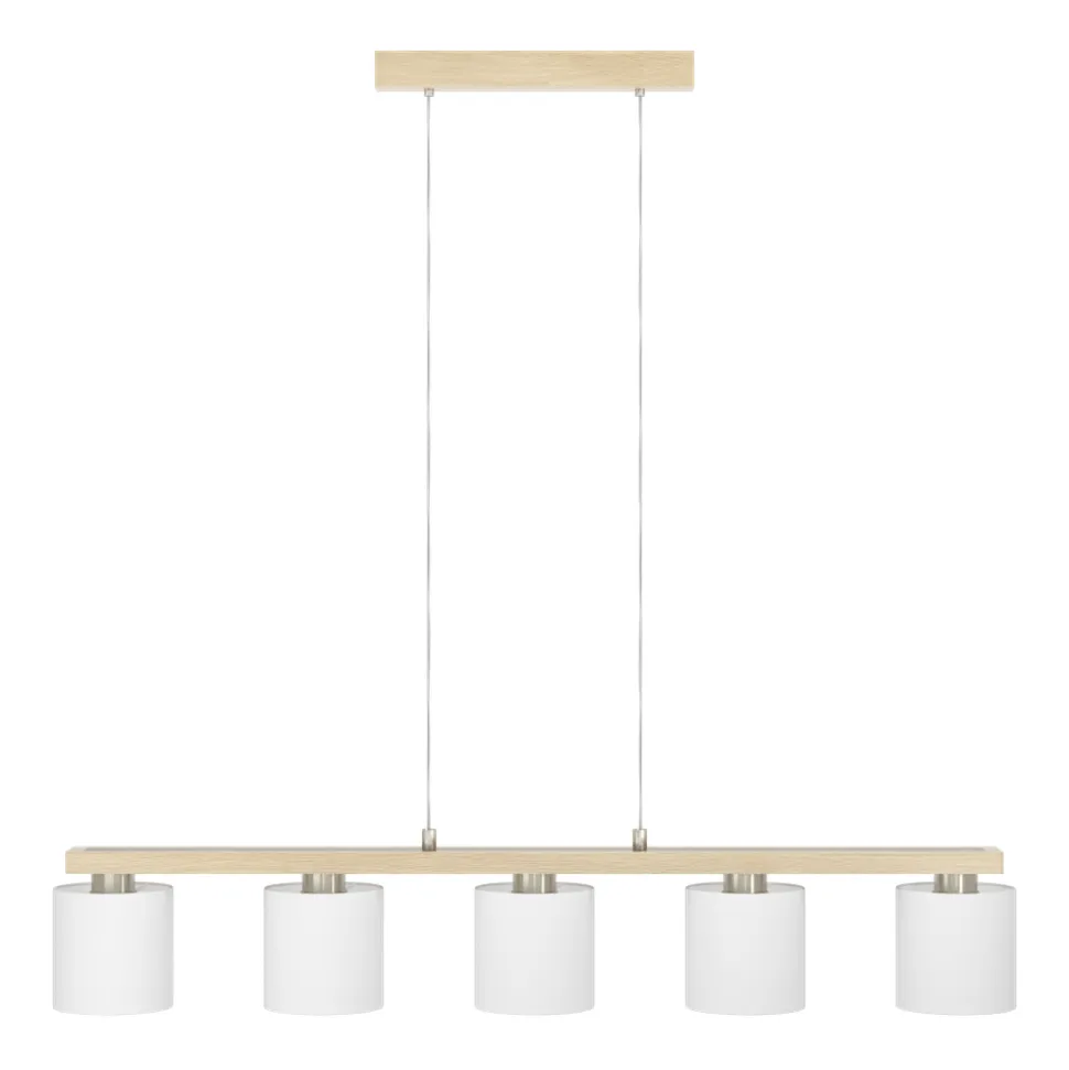 Eglo CASTRALVO hanglamp staal, hout nikkel-mat, bruin / textiel wit H: 1100 mm