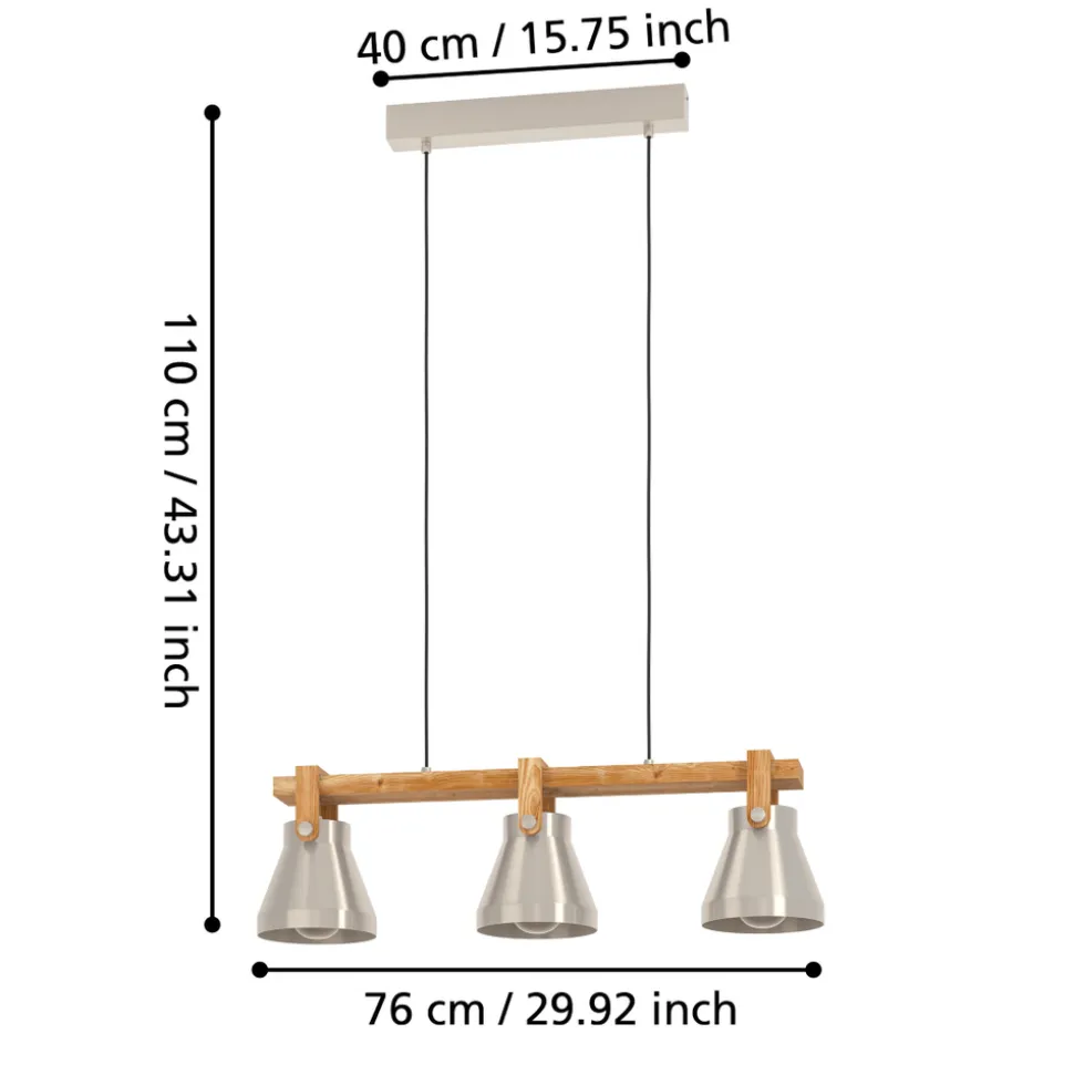Eglo CAWTON hanglamp staal, hout staal, rustiek bruin H: 1100 mm