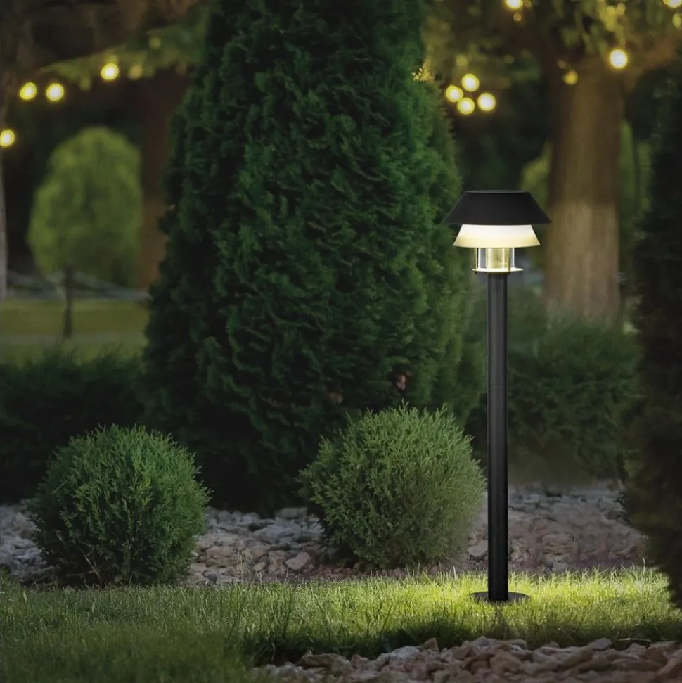 De CHIAPPERA buitenarmatuur is gemaakt van zwart metaal, met twee conische lampenkappen van verschillende afmetingen die op elkaar zijn geplaatst. In het midden van de lampenkappen bevindt zich een doorzichtige glazen cilinder die een zwarte fitting omsluit. De bolderlamp is beschermd tegen stof en spatten (IP65), zodat hij zonder angst buiten kan worden gebruikt. Met zijn monochrome ontwerp past hij in elke moderne buitenruimte en is hij perfect voor entrees, terrassen en balkons. De lamp is niet inbegrepen. Dit armatuur is compatibel met alle lampen met een E27-lampvoet.