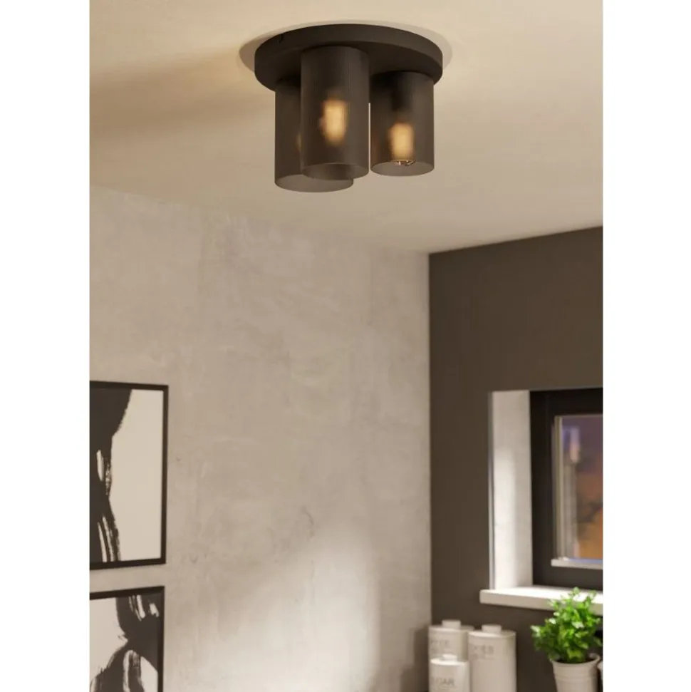 Eglo COLOMERA Plafondarmaturen staal zwart / Glas mat grijs H: 240 mm | Ø 350 mm