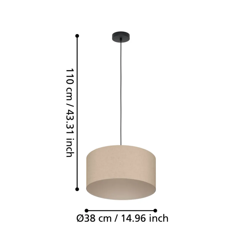 Eglo FENIGLIA hanglamp staal zwart / textiel, linnen natuur H: 1100 mm | Ø 380 mm
