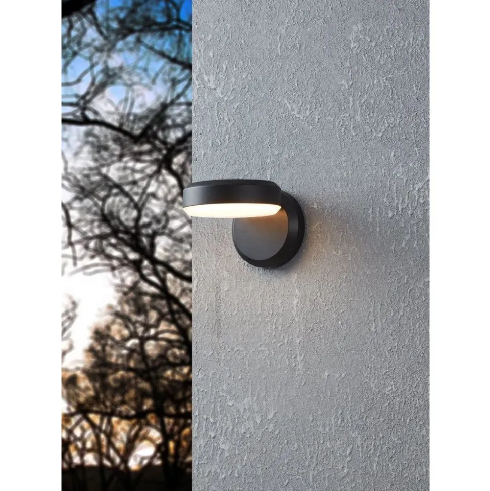 De FORNACI outdoor LED wandlamp bestaat uit een ronde muurplaat van zwart metaal en een lampbehuizing die ook rond is. De geïntegreerde LED’s achter het naar beneden gerichte witte kunststof lichtoppervlak stralen een aangenaam, warm wit licht uit. Het armatuur is beschermd tegen stof en spatwater (IP54), zodat het zonder angst buiten kan worden gebruikt. Dankzij het eenvoudige ontwerp past deze buitenarmatuur in elke buitenruimte, of het nu direct bij de ingang van het huis of op het terras is.