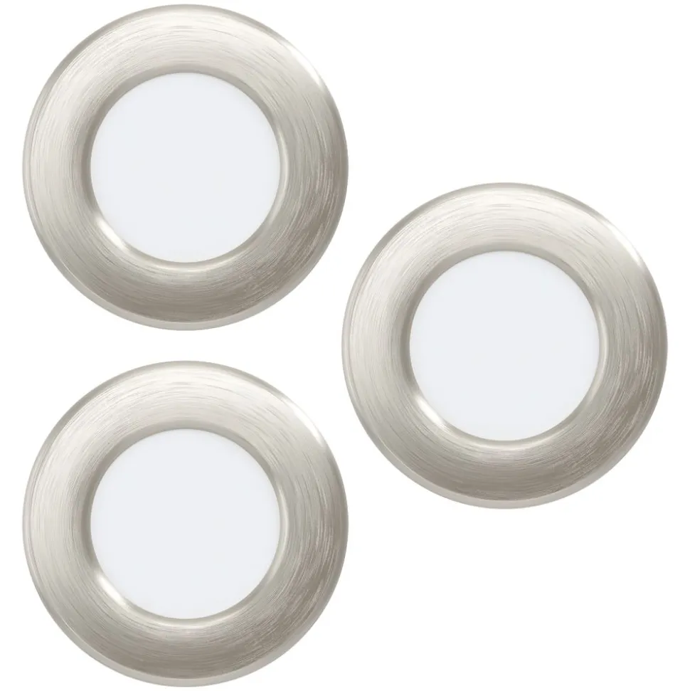 De set van 3 FUEVA 5 LED-inbouwarmaturen, elk met een diameter van 86 mm, is vervaardigd uit mat nikkel metaal. Dankzij de zeer geringe inbouwdiepte van slechts 26 mm past het perfect in elk interieur en kan het ook in isolatie worden aangebracht. De geïntegreerde LEDs stralen een aangenaam warm wit licht uit en blijven onzichtbaar dankzij de witte diffuser. Voor de installatie is een uitsparing van 75 mm diameter vereist. Dankzij het tijdloze ontwerp van deze inbouwspot kan hij in elke ruimte worden gebruikt, of het nu gaat om de keuken, de woonkamer, de slaapkamer, de hal of de eetkamer.
