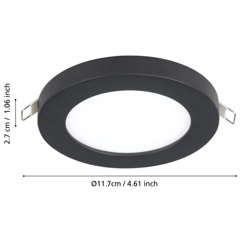 Eglo FUEVA FLEX inbouwarmatuur aluminium zwart / Kunststof wit H: 2 mm | Ø 117 mm