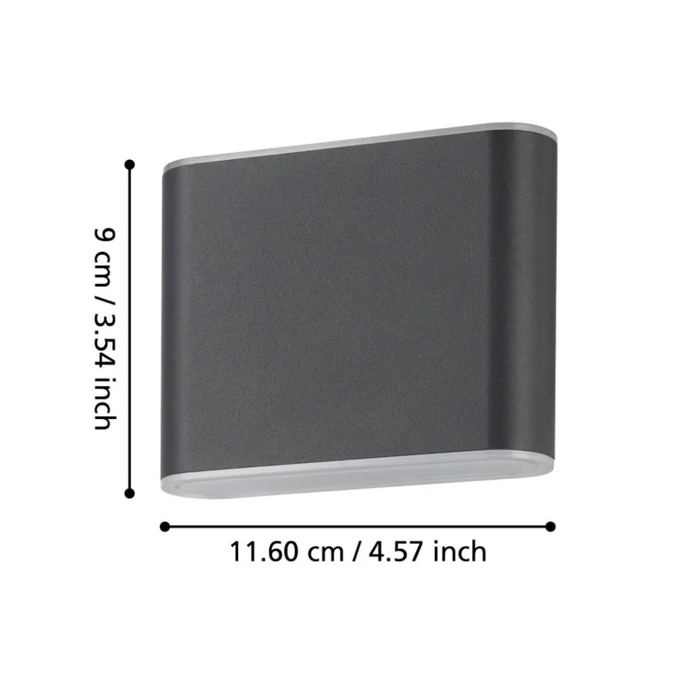 Eglo GRUTTI Wandlamp aluminium antraciet / Kunststof transparant H: 90 mm