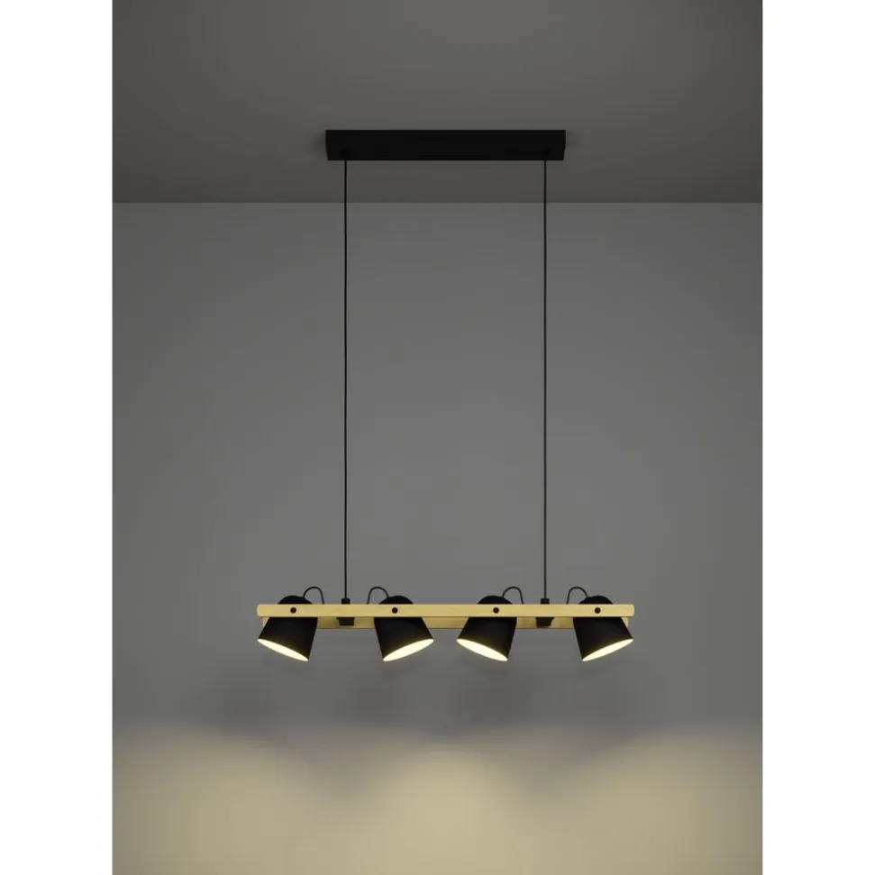 De LED hanglamp HORNWOOD-Z maakt deel uit van de connect.z productlijn. De hanglamp heeft een houten behuizing met vier verstelbare zwarte stalen lampenkappen. De lampenkappen kunnen worden aangepast om specifieke delen van de kamer te accentueren. De geïntegreerde LED’s produceren een instelbaar licht dat naar wens kan worden aangepast. Je kunt kiezen uit warm wit, neutraal wit en koel wit licht, en een breed scala aan RGB-kleuren. Het licht kan worden bediend met een gratis app (AwoX HomeControl), die ook andere functies biedt zoals helderheidsaanpassing, timerbediening, aanwezigheidssimulatie en nog veel meer. Het product maakt gebruik van Bluetooth en ZigBee 3.0 en kan ook worden bediend met compatibele spraakassistenten. De hanglamp kan ook bediend worden met een afstandsbediening, die apart verkrijgbaar is. Met een modern ontwerp past de lamp naadloos in verschillende interieurstijlen en biedt stijlvolle verlichting voor elke ruimte, of het nu in de woonkamer is of boven de eetkamertafel.