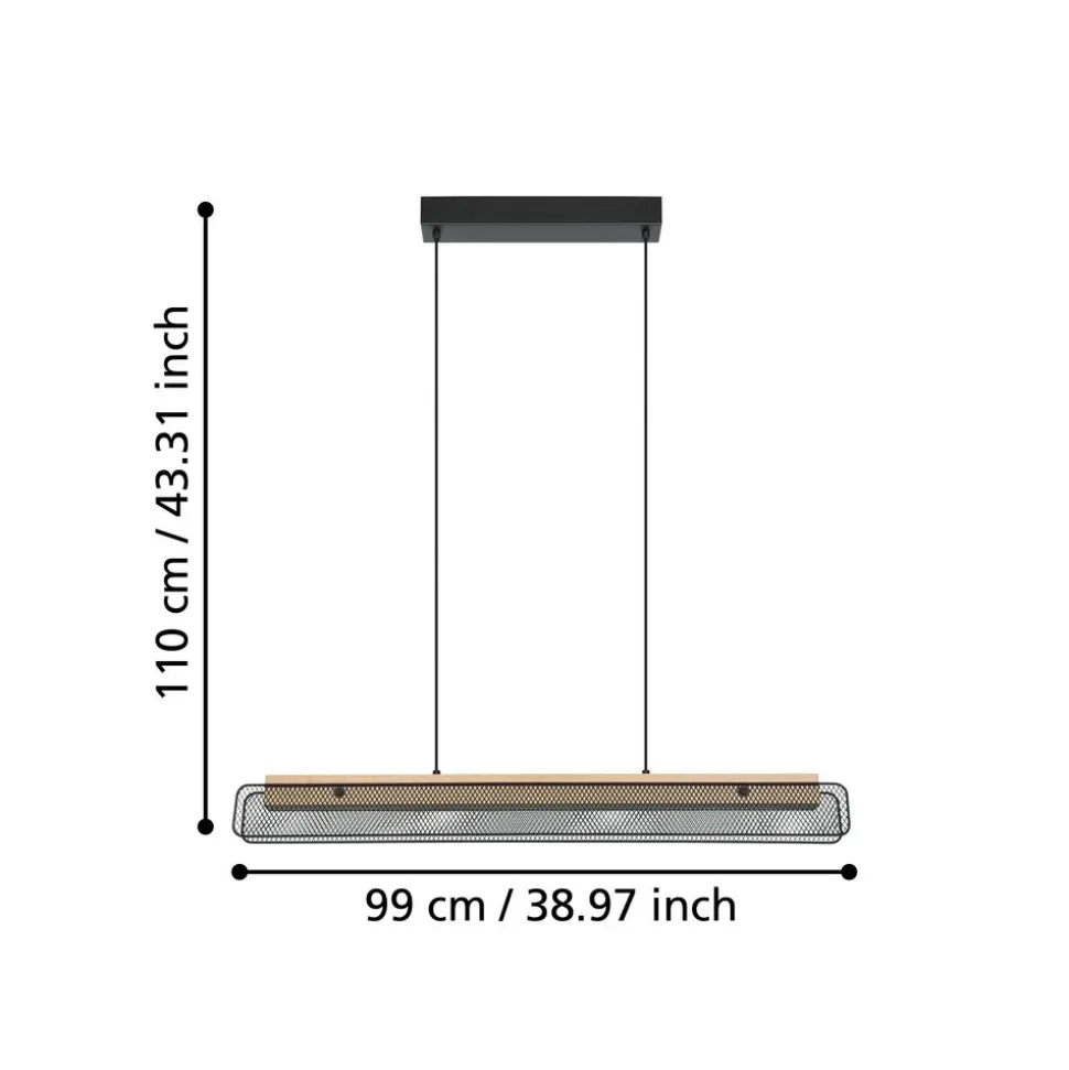 Eglo KOKOMO-Z hanglamp staal, hout zwart, bruin / aluminium, kunststof zwart, wit H: 1100 mm