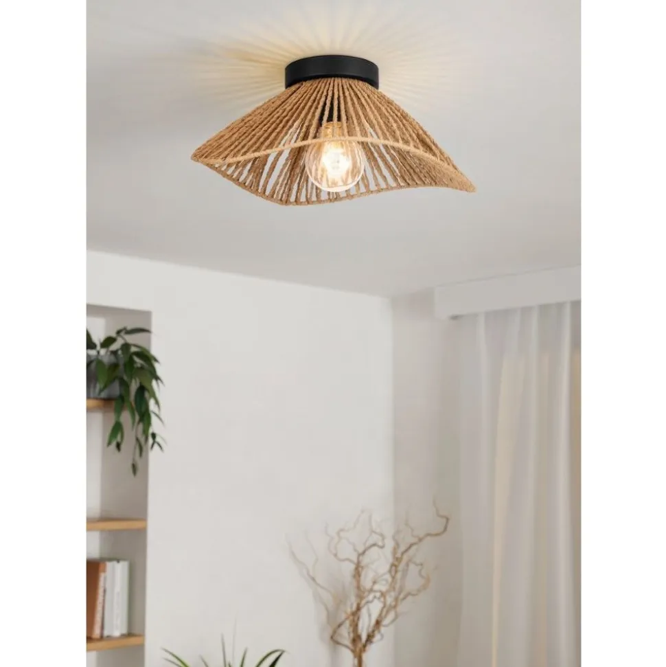 Eglo LAVISTER Plafondarmaturen staal zwart / papier natuur H: 175 mm | Ø 390 mm