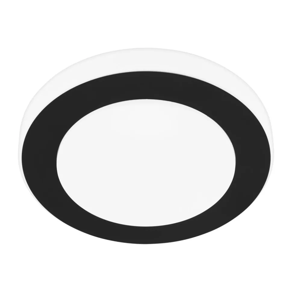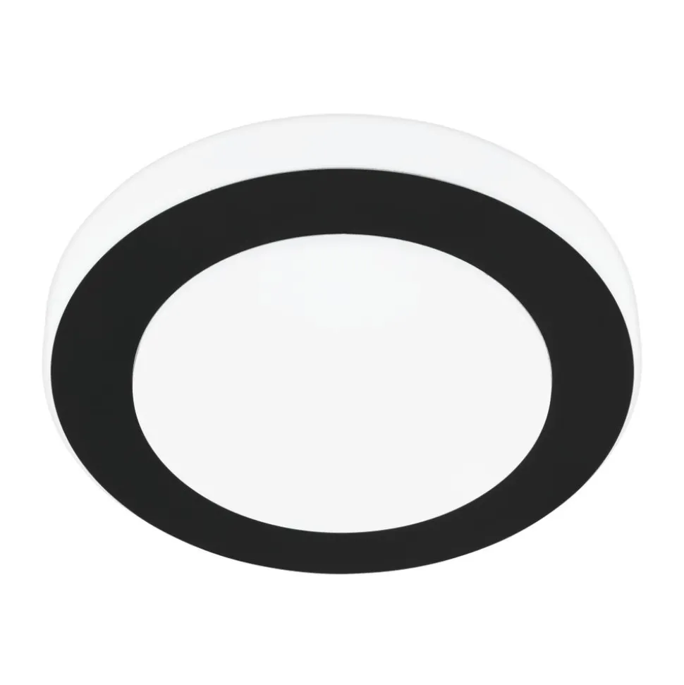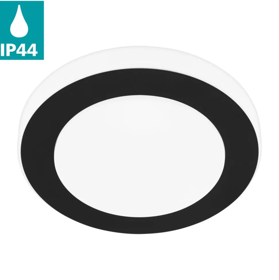 De CARPI LED plafondlamp bestaat uit een rond wit kunststof lamphuis gecombineerd met een zwart metalen ringvormige decoratie. De achter het witte plastic kapje geïntegreerde LEDs geven een gelijkmatig warm wit licht. De plafondlamp is spatwaterdicht (IP44) en kan dus zonder vrees in een badkamer worden gebruikt. Het past perfect in moderne interieurs en biedt tijdloze verlichting in elke ruimte, of het nu in de badkamer, keuken of hal is.