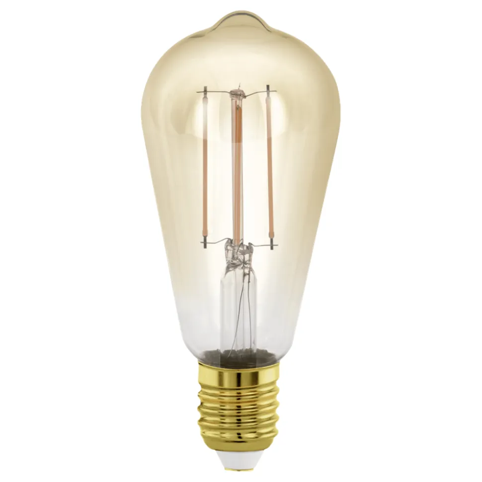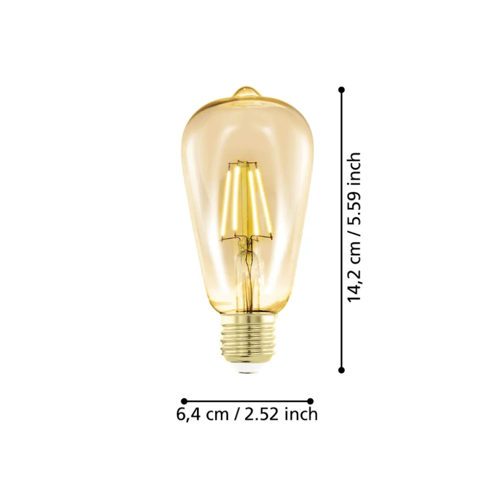 De E27 LED lichtbron is gemaakt van amberkleurig glas. De 4 Watt LED lamp (ST64) verspreidt een warm wit gouden licht van 300 lumen in je kamer en kan ook gedimd worden (afhankelijk van de dim eigenschappen van je licht). Met zijn warme licht en trendy vintage design is deze LED lamp een blikvanger in elke kamer.
