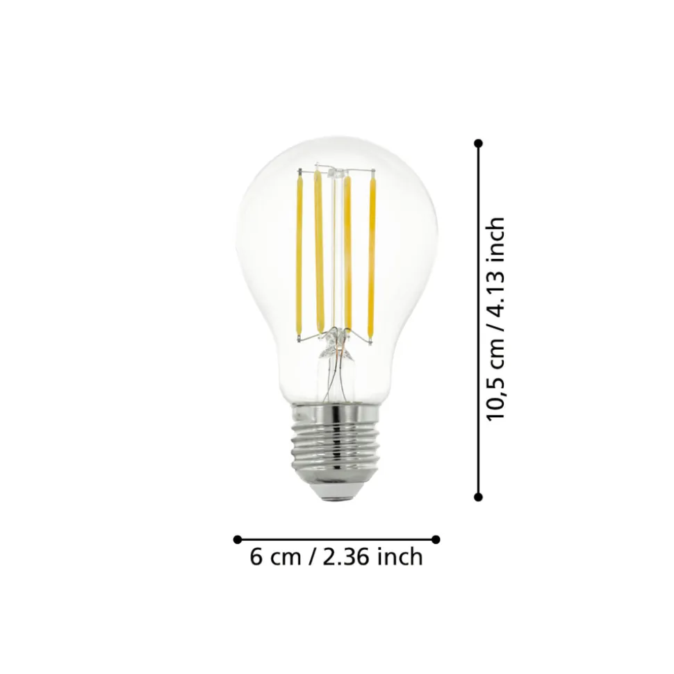 De E27 LED lamp met zichtbaar filament is gemaakt van helder glas. De klassieke 8 Watt LED lamp (A60) straalt een aangenaam warm wit licht van 1055 lumen.