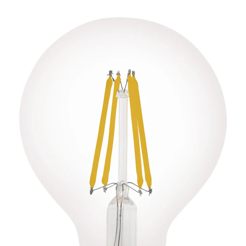 De E27 LED lamp met zichtbaar filament is gemaakt van helder glas. De klassieke 7,5 Watt LED lamp (G80) geeft een aangenaam warm wit licht van 806 lumen en kan worden gedimd (afhankelijk van de dim eigenschappen van het armatuur).