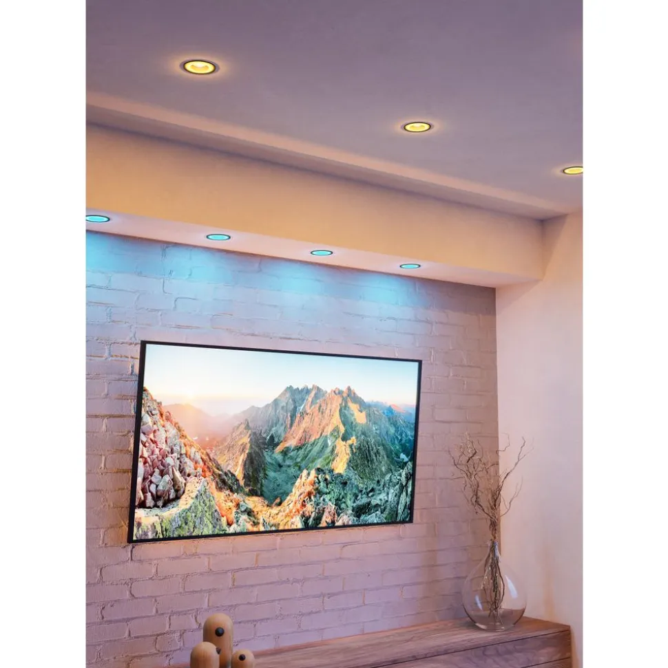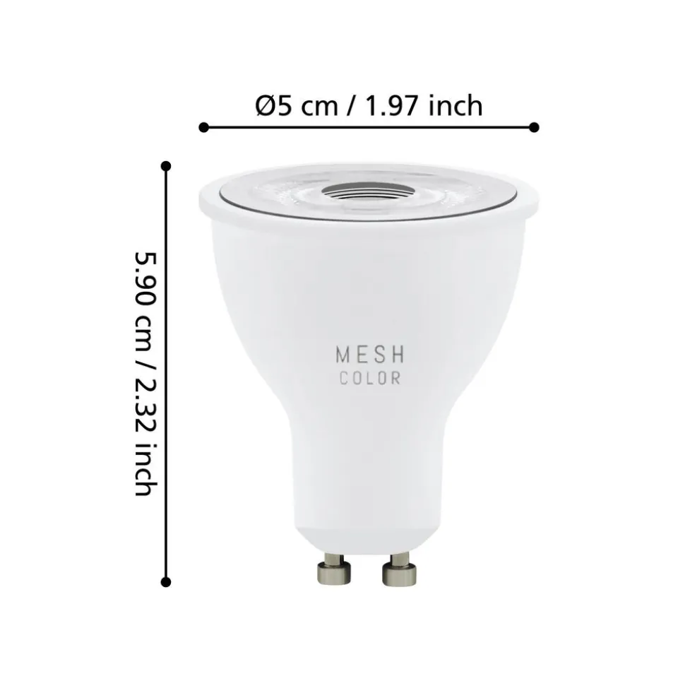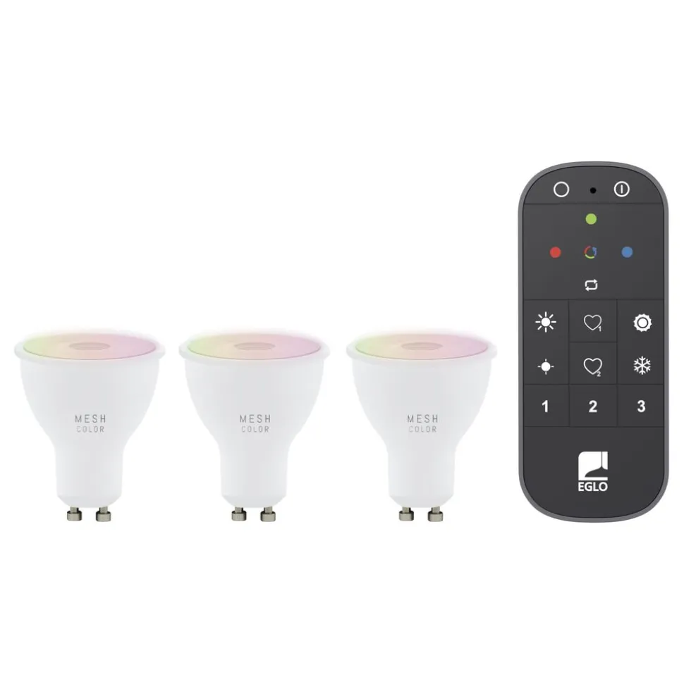 Deze set van drie GU10 LED lampen met afstandsbediening uit de Smart Home Connect-Z serie is gemaakt van mat wit kunststof. Deze LED-lamp verspreidt een aangenaam licht volgens uw voorkeuren. Je kunt kiezen tussen warm wit, neutraal wit en koel wit, met een veelvoud aan RGB lichtkleuren. De gloeilamp wordt bediend via de gratis app (AwoX Home Control) en geeft u toegang tot andere comfortfuncties zoals dimmer, timer, aanwezigheidssimulatie en nog veel meer. De lamp wordt beheerd via Bluetooth of ZigBee 3.0. Bediening via compatibele spraakassistent is ook mogelijk. Indien nodig kunt u ook ZigBee 3.0 slimme armaturen van andere fabrikanten in het systeem integreren via een bridge (die geen deel uitmaakt van ons aanbod, controleer de technische vereisten van het betreffende product). De slimme lamp kan ook worden bediend met een apart verkrijgbare afstandsbediening. Door uw klassieke lamp te vervangen door een EGLO Connect-Z-lamp, kunt u uw eenvoudige armaturen omtoveren tot slimme armaturen en deze in het systeem integreren.