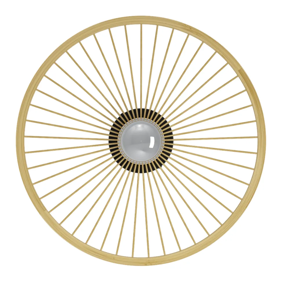 Eglo LEOMINSTER Wand-/plafondlamp staal zwart / Hout natuur H: 90 mm | Ø 450 mm