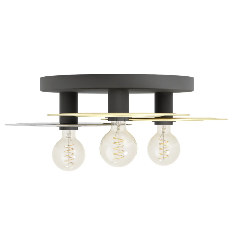 Eglo LINTMILL Plafondarmaturen staal zwart, geborsteld messing / Glas grijs H: 200 mm | Ø 530 mm