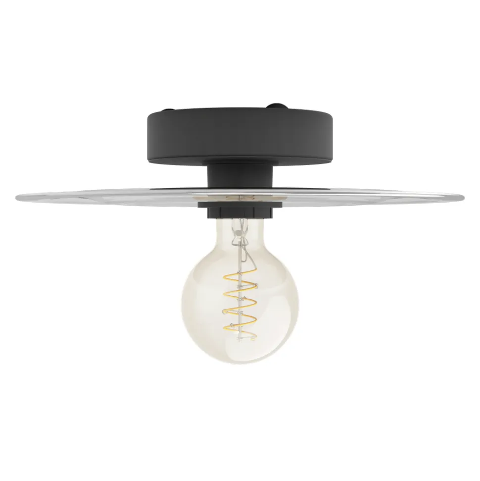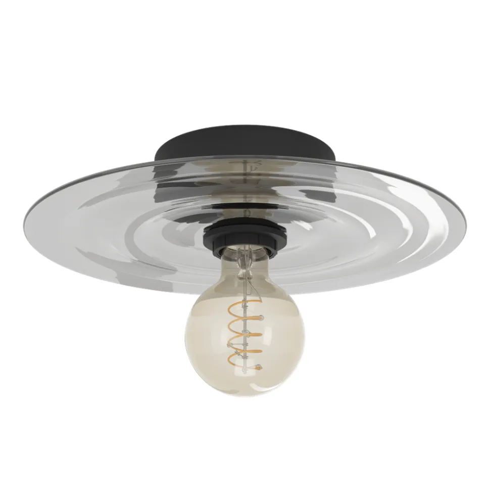 Eglo LINTMILL Wand-/plafondlamp staal zwart / Glas grijs H: 75 mm | Ø 300 mm