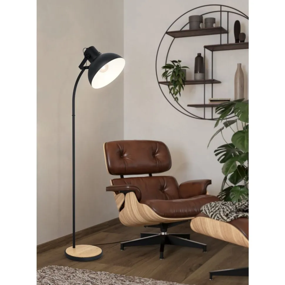 Eglo LUBENHAM Staande lampen staal, hout zwart, bruin H: 1600 mm