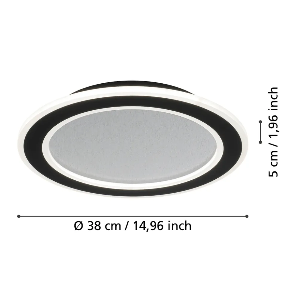 Eglo MACCHIONI Plafondarmaturen staal, kunststof zwart, wit / kunststof met kristaleffect wit H: 50 mm | Ø 380 mm
