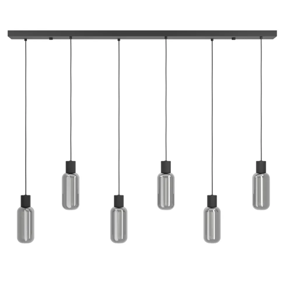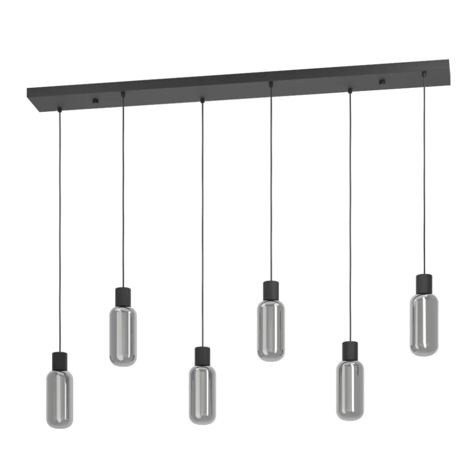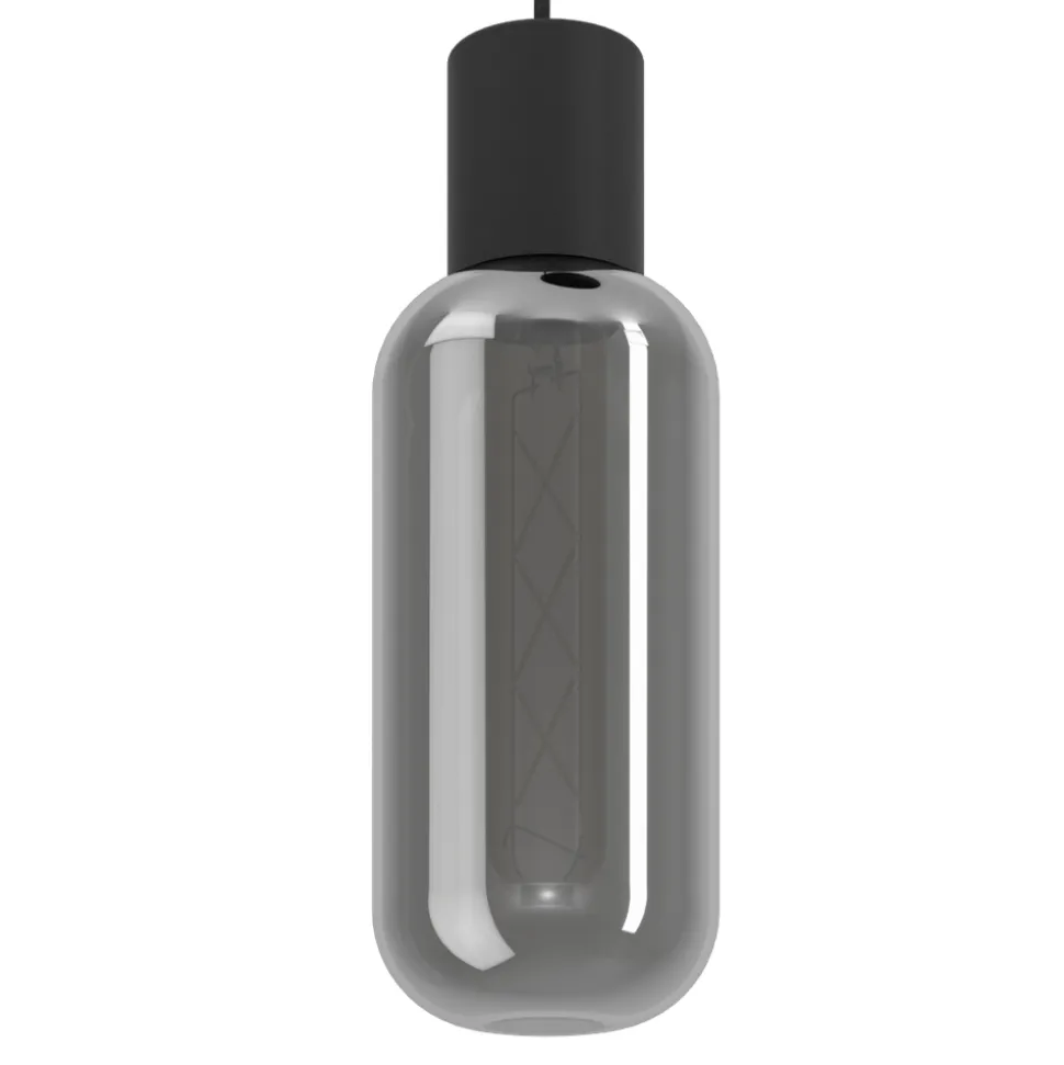 Eglo MAIONE hanglamp staal zwart / glas gestoomd grijs H: 1100 mm