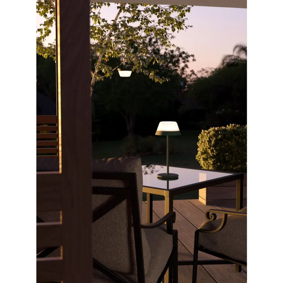 De Meggiano tafellamp voor buiten is gemaakt van hoogwaardig kunststof. De buitenlamp is stofdicht & plensbui bestendig (IP54) en kan dus zonder problemen buiten worden gebruikt. Deze lamp, uitgevoerd in stijlvol groen met wit, is niet alleen functioneel maar ook nog eens heel sfeervol. Vooral in een moderne (voor)tuin komt deze lamp uitstekend tot zijn recht. De meegeleverde LED-lampen geven een aangenaam warm wit licht en zorgen voor een optimale verlichting.