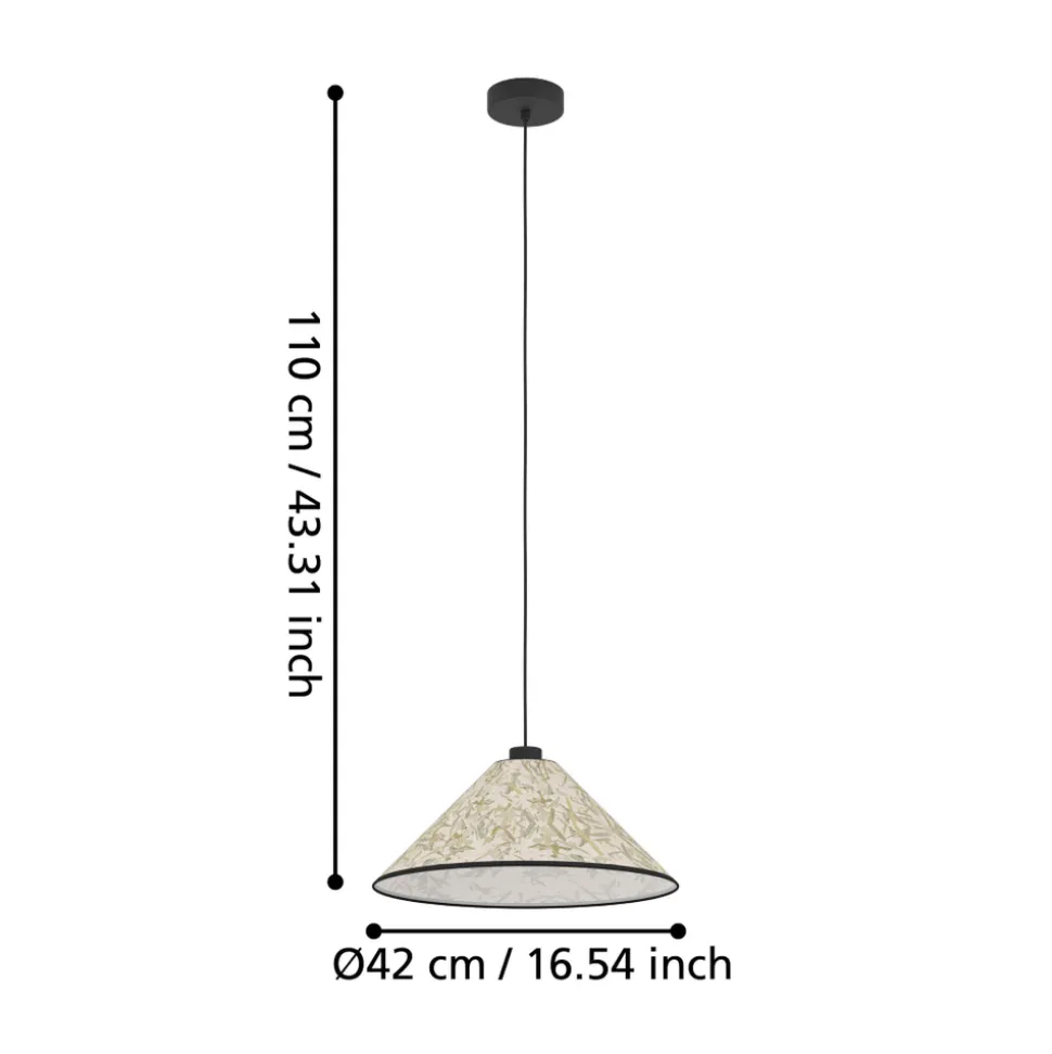 Eglo OXPARK hanglamp staal zwart / textiel met bamboebladeren wit, groen H: 1100 mm | Ø 420 mm