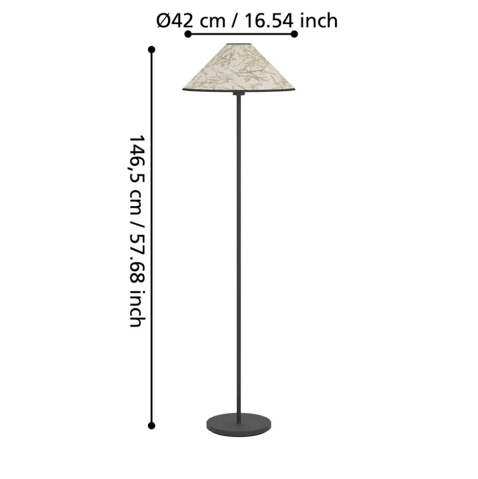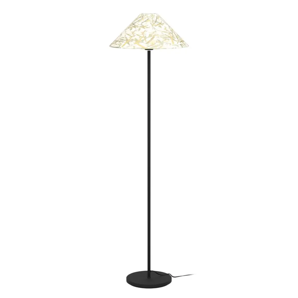 Eglo OXPARK Staande lampen staal zwart / textiel met bamboebladeren wit, groen H: 1465 mm | Ø 420 mm