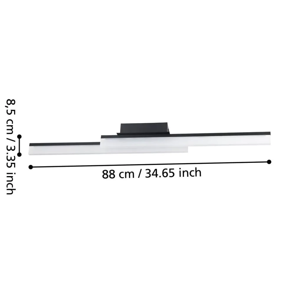 Wand-/plafondlamp aluminium, staal zwart / Kunststof satijn