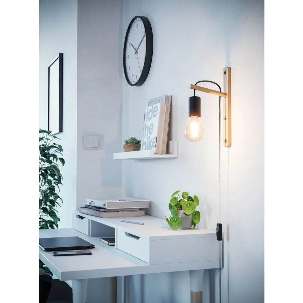 Eglo POCKLEY Wandlamp hout, staal bruin, zwart H: 295 mm