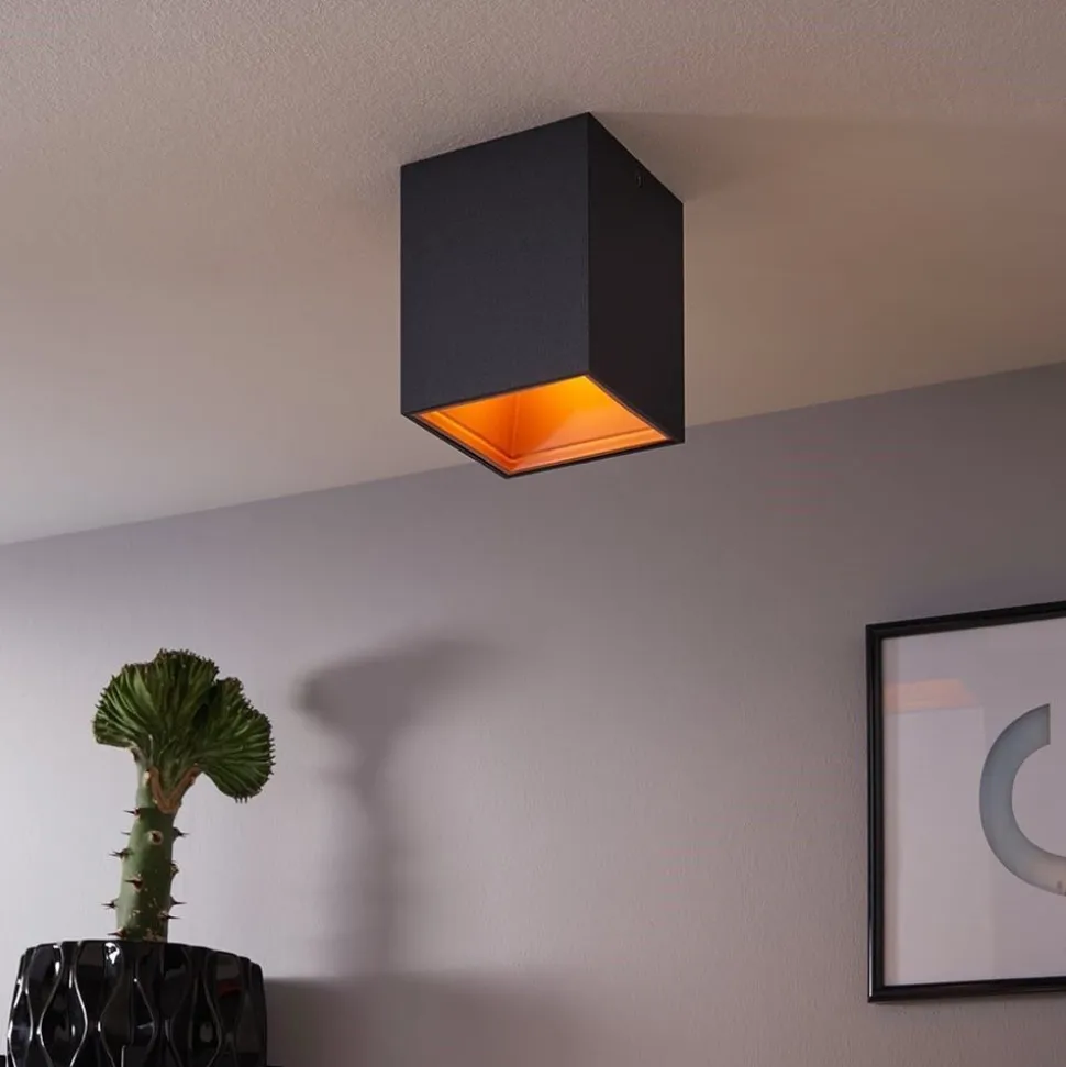 De plafondlamp POLASSO bestaat uit een zwarte aluminium kubus met een koperkleurige binnenkant. De geïntegreerde LED’s geven een aangenaam warm wit licht. Het minimalistische ontwerp van deze plafondlamp is een slimme aanvulling op moderne interieurs. Hij zorgt voor elegante verlichting in elke ruimte, of het nu de keuken, woonkamer, slaapkamer of hal is.