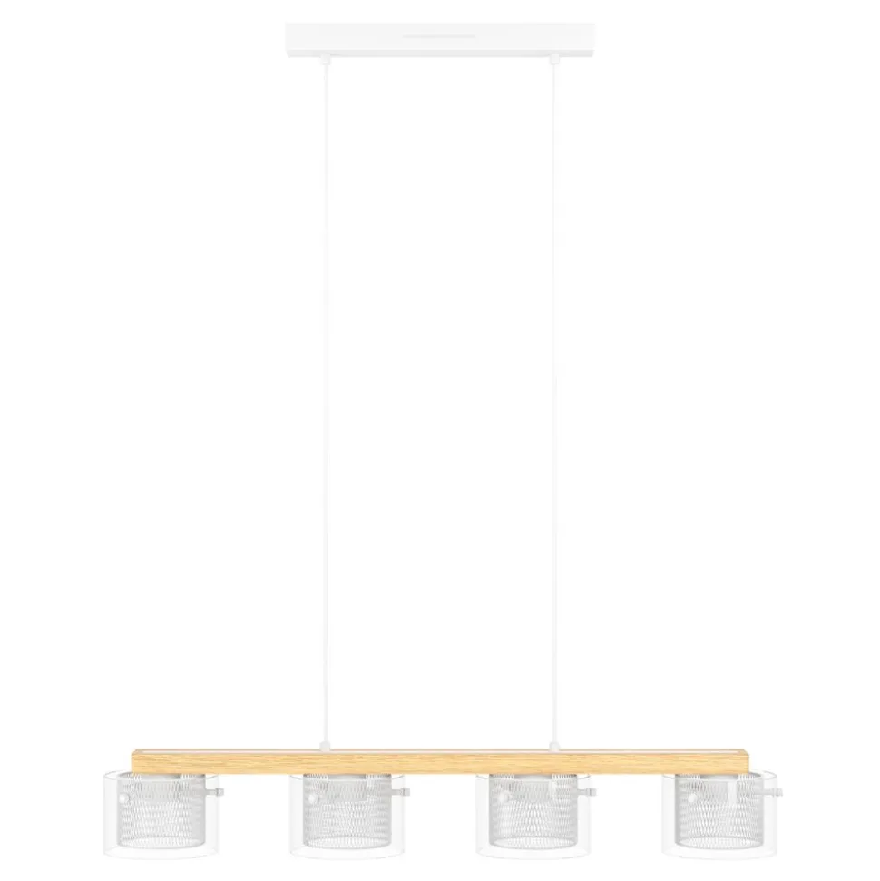 Eglo PORTICO-Z hanglamp staal, hout wit, bruin / staal, glas wit, helder H: 1100 mm