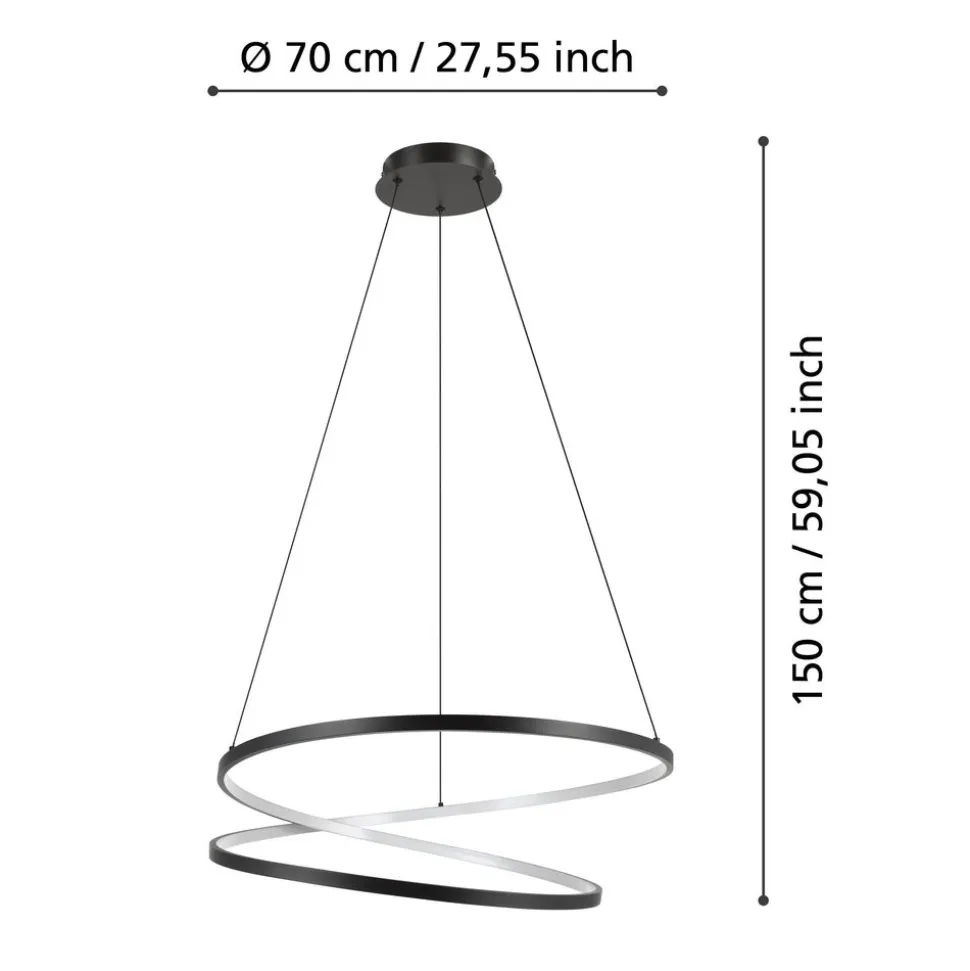 Eglo RUOTALE hanglamp aluminium, staal zwart / Kunststof wit H: 1500 mm | Ø 700 mm