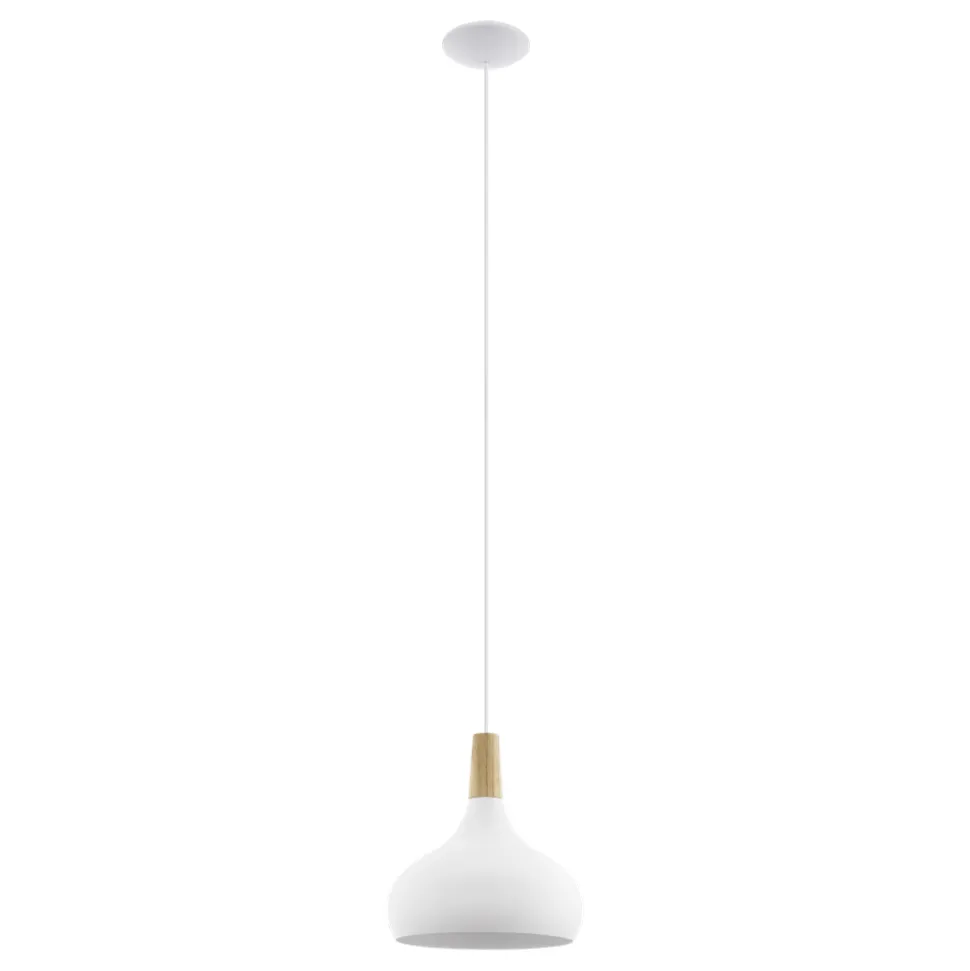 Eglo SABINAR hanglamp staal wit / Hout bruin H: 1100 mm | Ø 280 mm