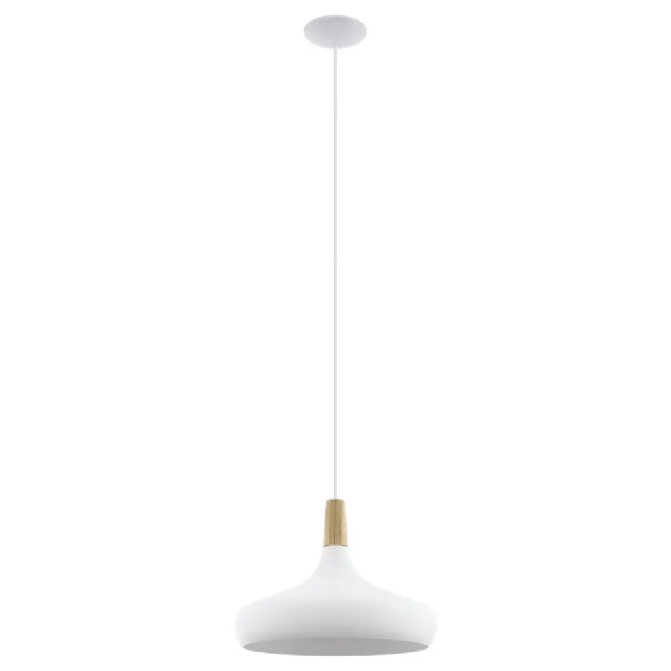 Eglo SABINAR hanglamp staal wit / Hout bruin H: 1100 mm | Ø 400 mm