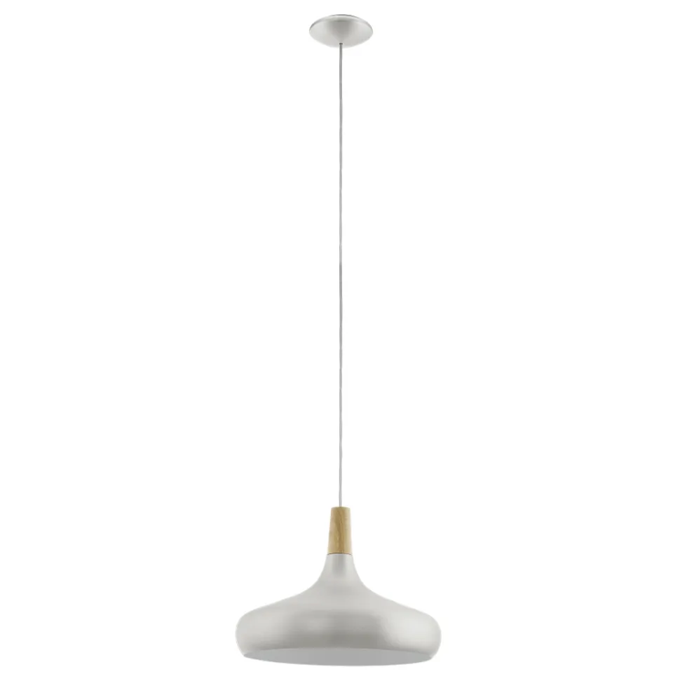 Eglo SABINAR hanglamp staal zilver geborsteld / Hout bruin H: 1100 mm | Ø 400 mm
