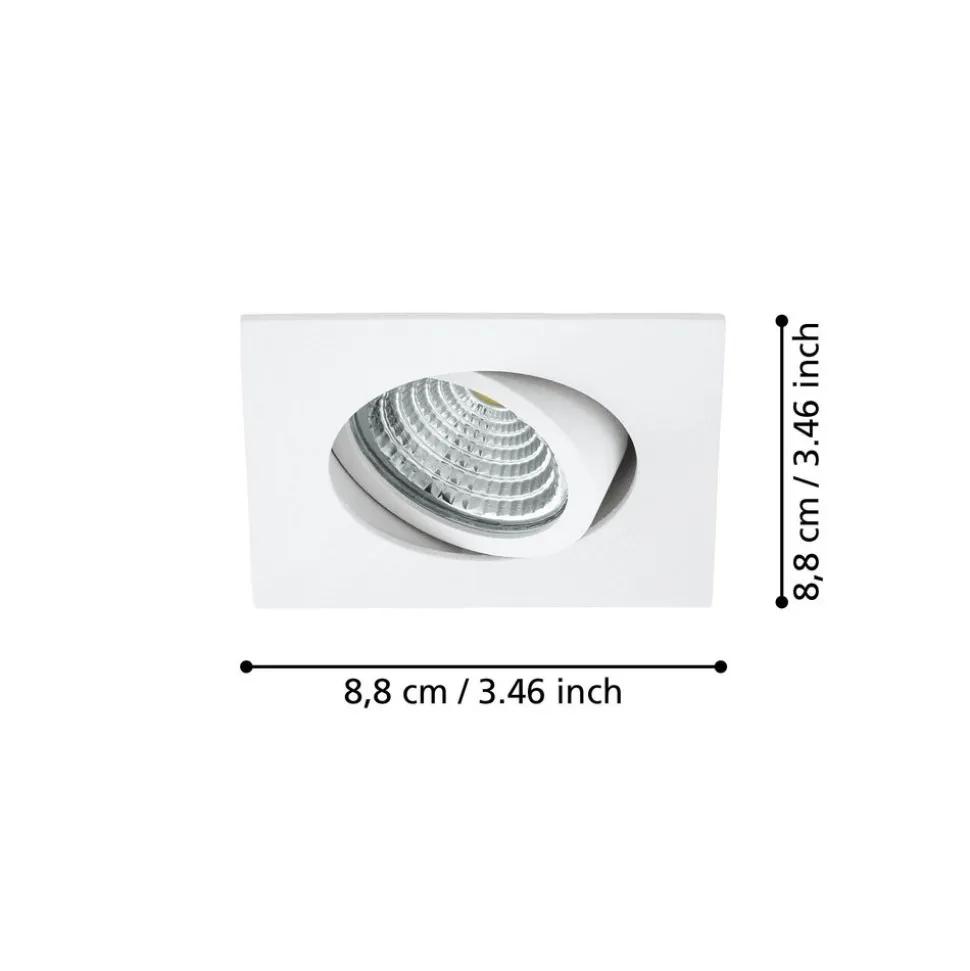 De SALICETO LED-inbouwlamp is gemaakt van wit aluminium met een verstelbare spot. De inbouwlamp heeft een afmeting van 88 x 88 mm en een inbouwdiepte van 50 mm. De draaibare lampkop is uitgerust met geïntegreerde LEDs die een aangenaam warm wit licht uitstralen en met een geschikte draaidimmer aan de muur kunnen worden gedimd. Het biedt je de mogelijkheid om gerichte lichtaccenten in de kamer aan te brengen. De inbouwspot past perfect in bijna elke woonruimte, bijvoorbeeld in de keuken, woonkamer of hal. Voor de installatie is een uitsparing van ∅ 68 mm nodig.