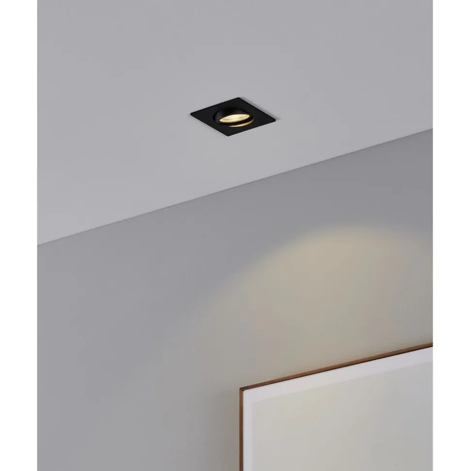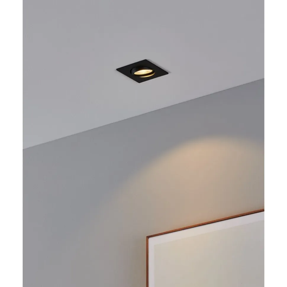 De SALICETO LED-inbouwlamp is gemaakt van zwart aluminium met een verstelbare spot. De inbouwlamp heeft een afmeting van 88 x 88 mm en een inbouwdiepte van 50 mm. De draaibare lampkop is uitgerust met geïntegreerde LEDs die een aangenaam warm wit licht uitstralen en met een geschikte draaidimmer aan de muur kunnen worden gedimd. Het biedt je de mogelijkheid om gerichte lichtaccenten in de kamer aan te brengen. De inbouwspot past perfect in bijna elke woonruimte, bijvoorbeeld in de keuken, woonkamer of hal. Voor de installatie is een uitsparing van ∅ 68 mm nodig.