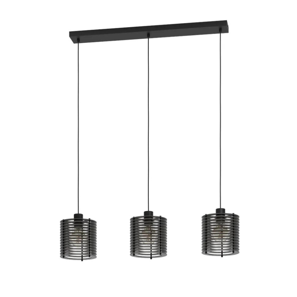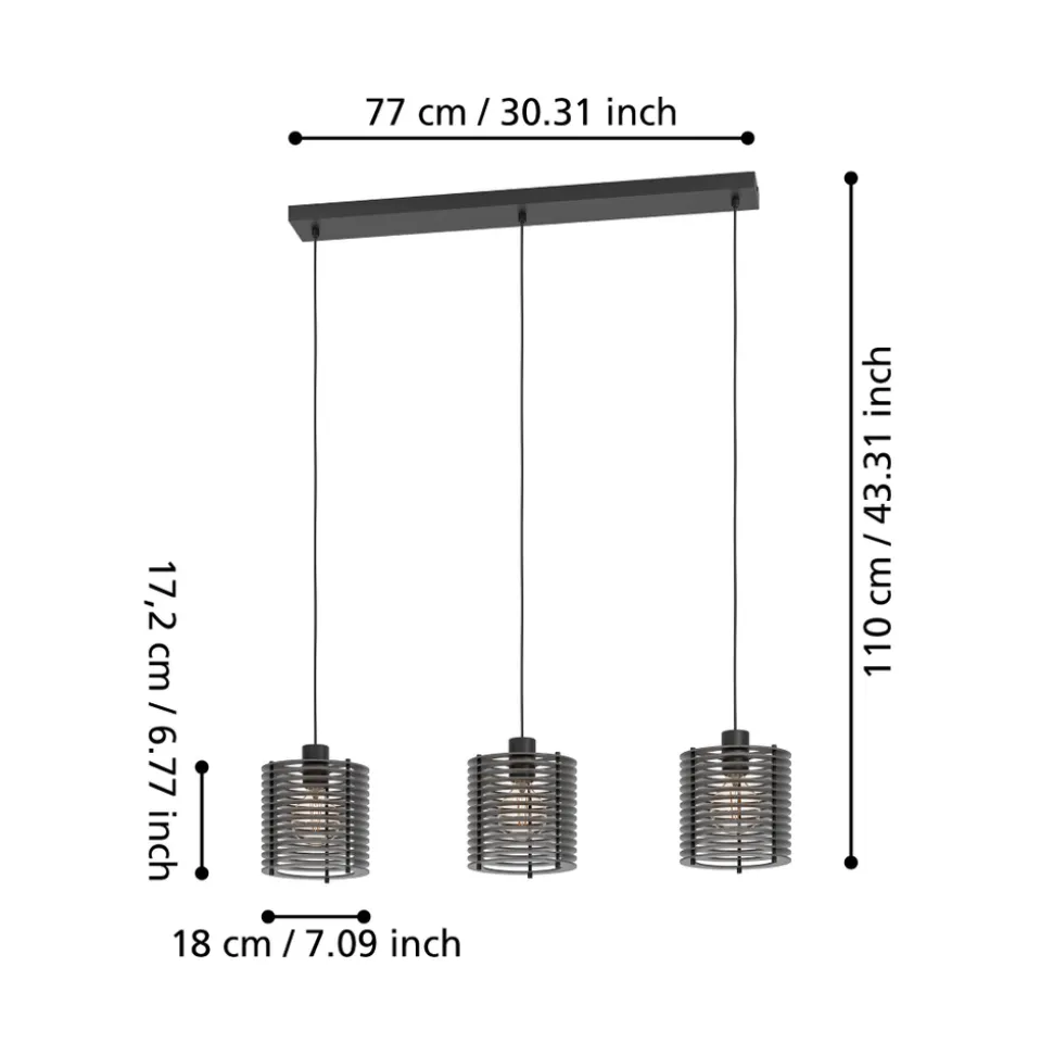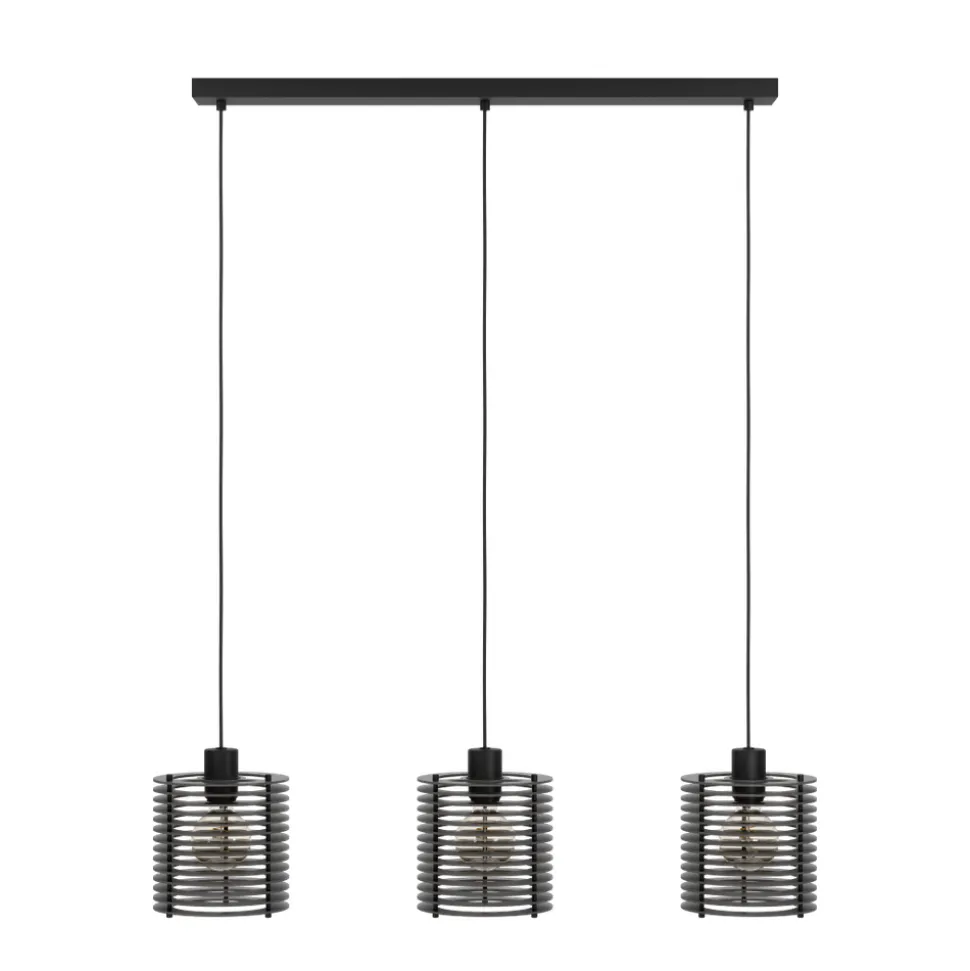 De Segovia hanglamp bestaat uit een zwarte metalen ophanging en drie lampenkappen. De kapjes zijn gemaakt van zwarte lamellen, die bij verlichting fascinerende licht- en schaduweffecten creĆ«ren. De boven elkaar geplaatste lamellencirkels zorgen ervoor dat je niet verblind geraakt. De hanglamp past perfect in moderne inrichtingstrends – in de woonkamer of in de eetkamer boven de eettafel. De afgebeelde lichtbronnen zijn niet inbegrepen. De lamp heeft een lichtbron nodig met E27 fitting.