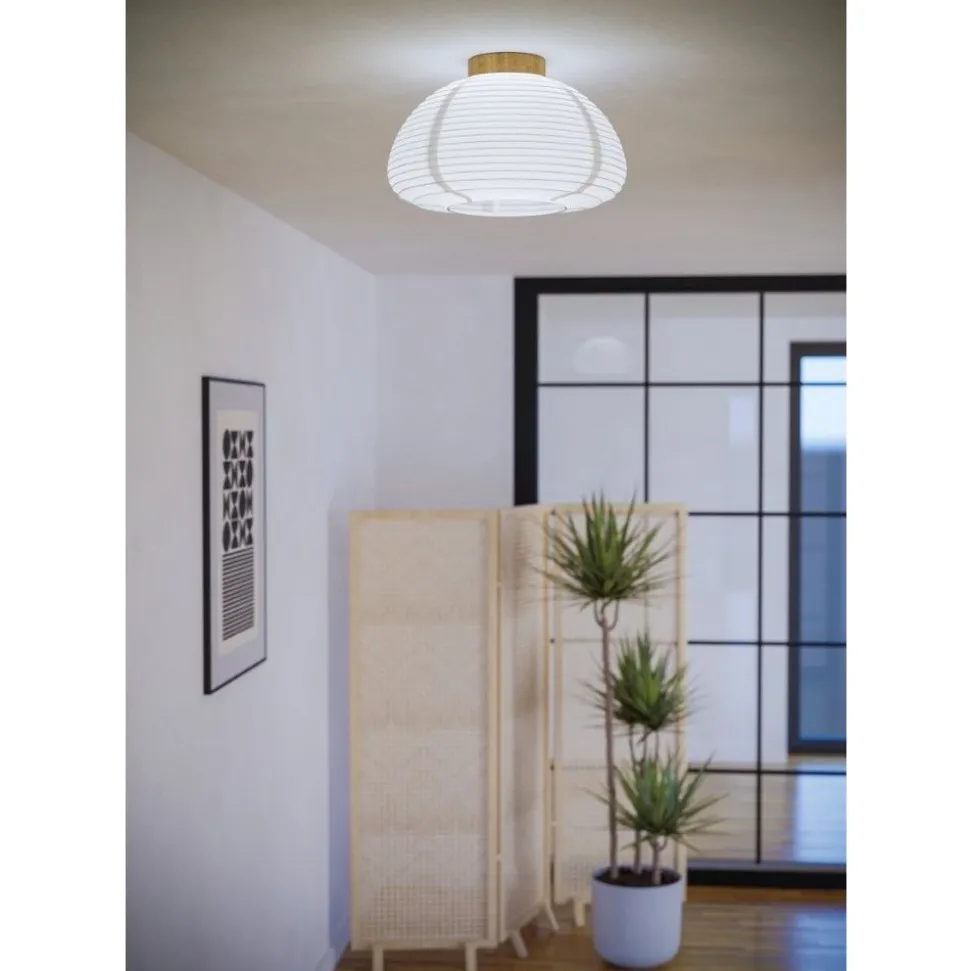 Eglo SUMMERHILL Plafondarmaturen hout, staal bruin / papier wit H: 245 mm | Ø 400 mm