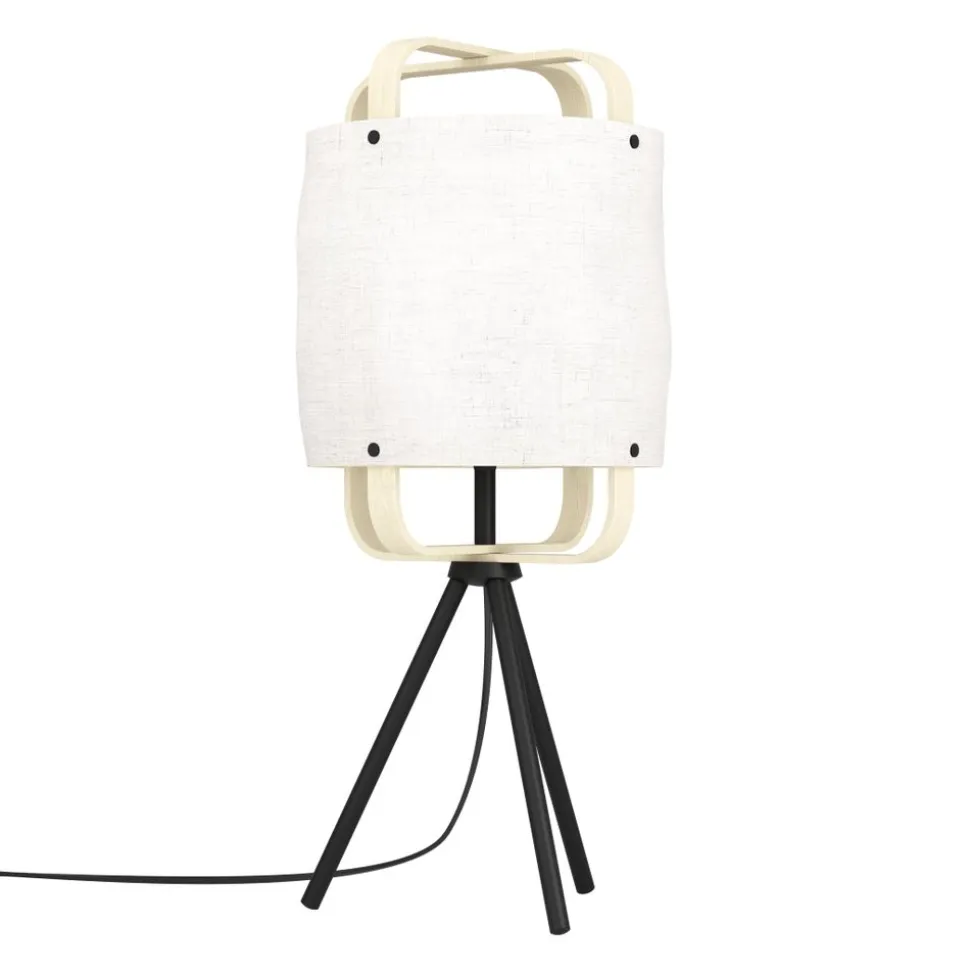 Eglo SURFLEET Tafellampen staal zwart / hout, textiel natuur H: 515 mm | Ø 200 mm