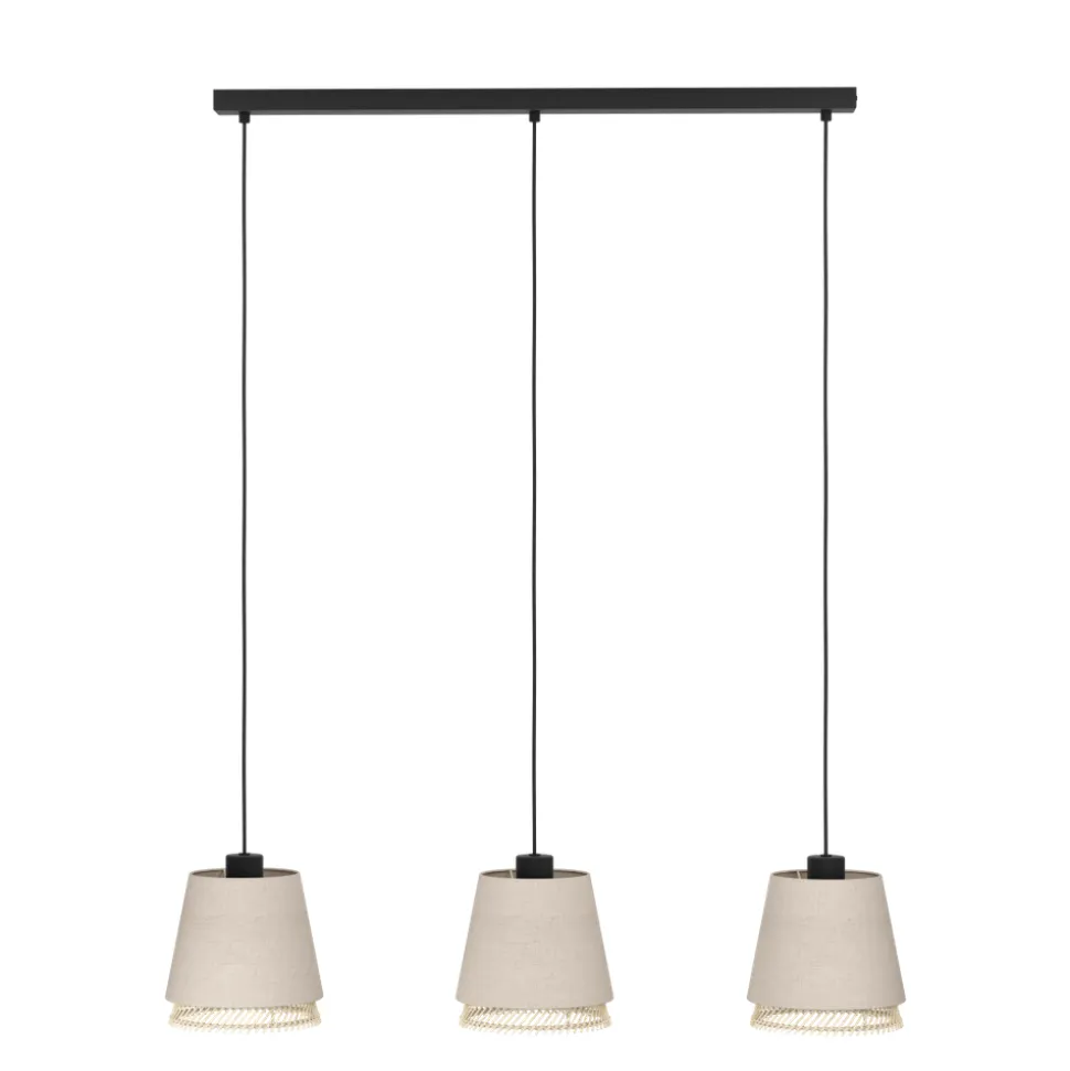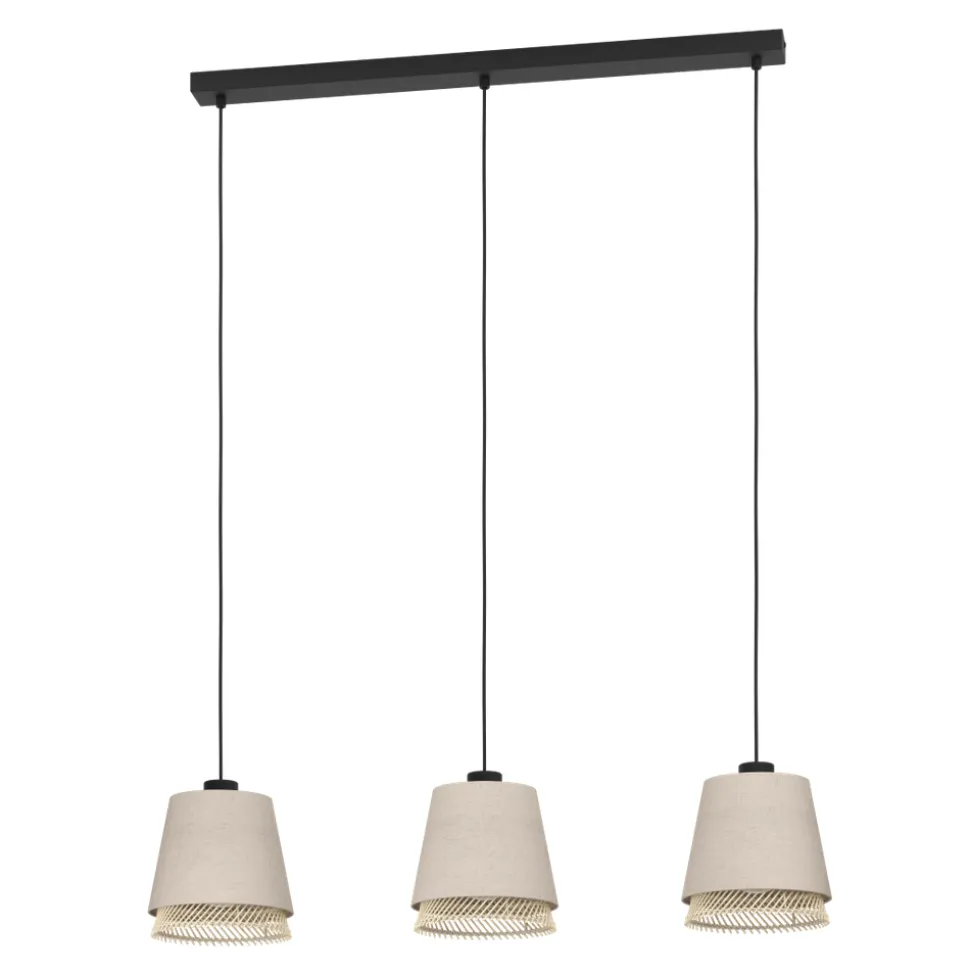 Eglo TABLEY hanglamp staal zwart / textiel, hout natuurlijk, bruin H: 1100 mm