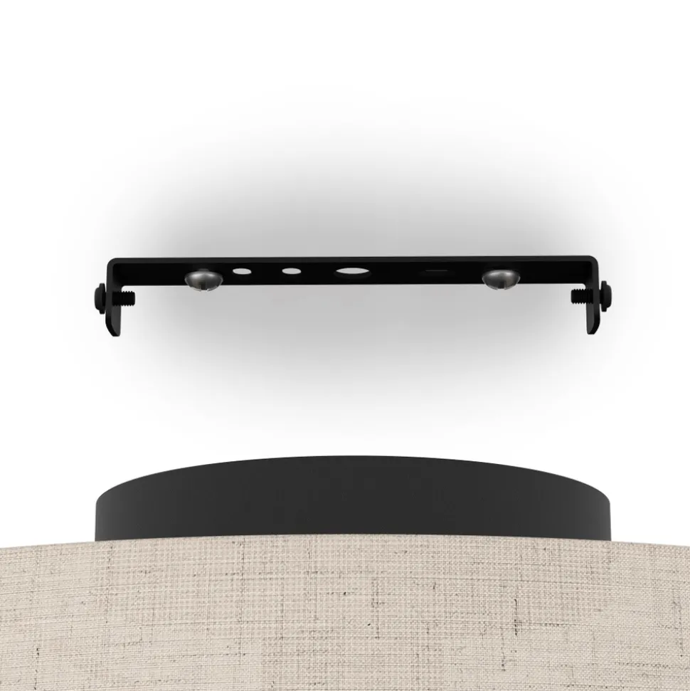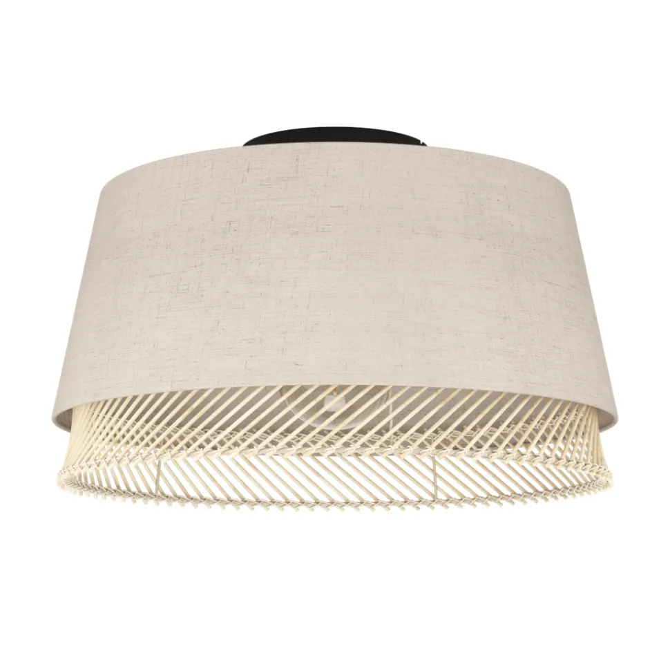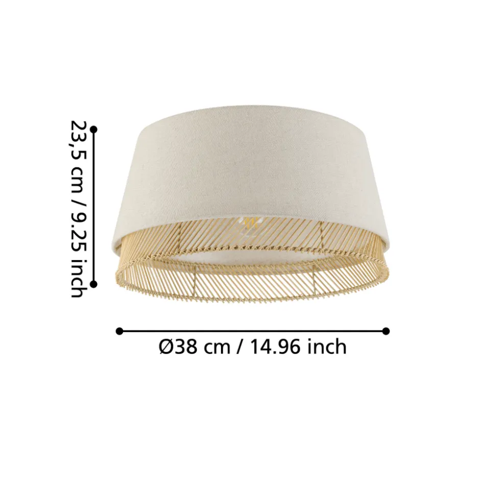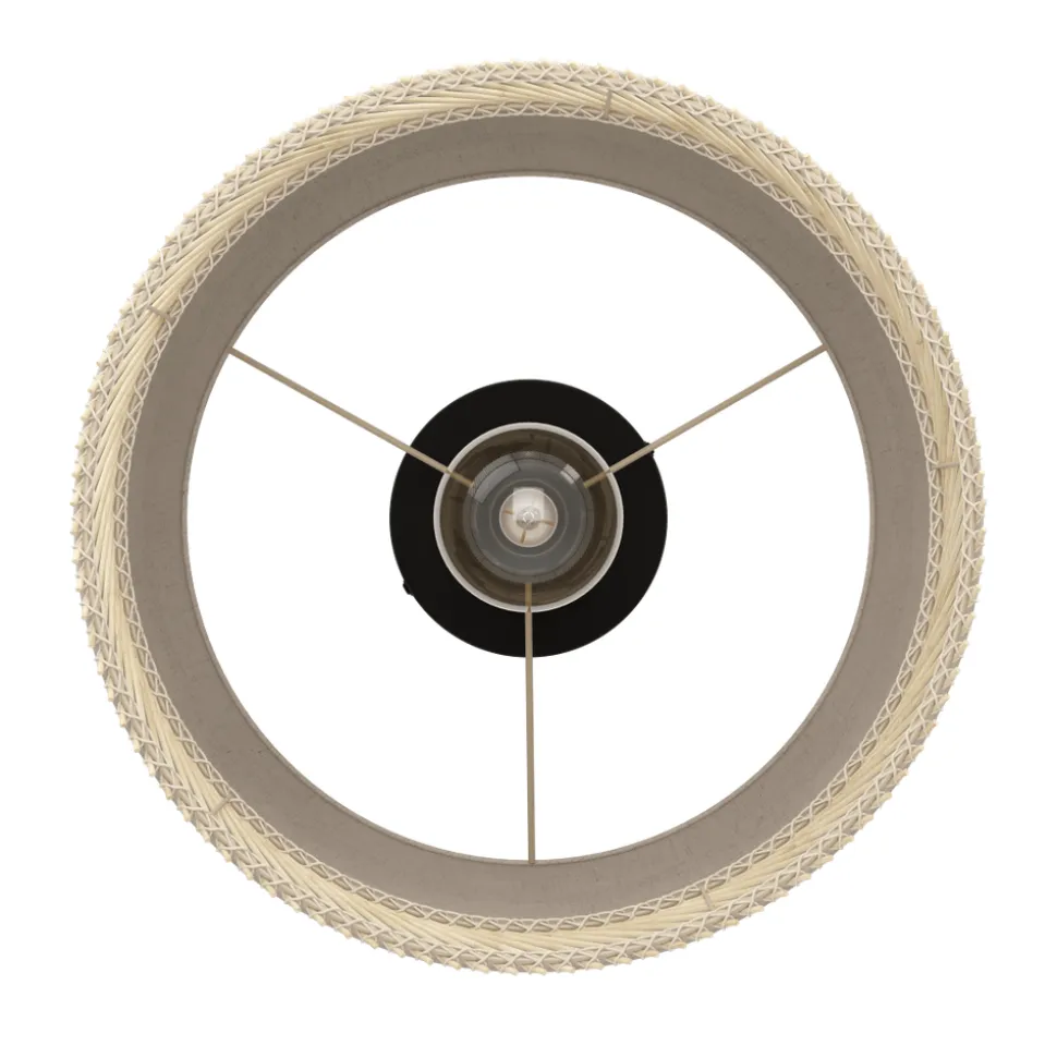 Eglo TABLEY Plafondarmaturen staal zwart / textiel, hout natuurlijk, bruin H: 235 mm | Ø 380 mm