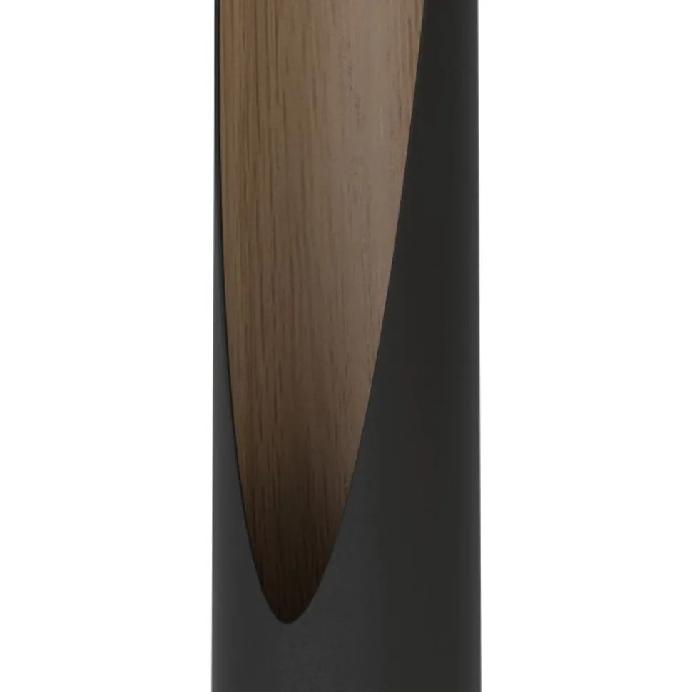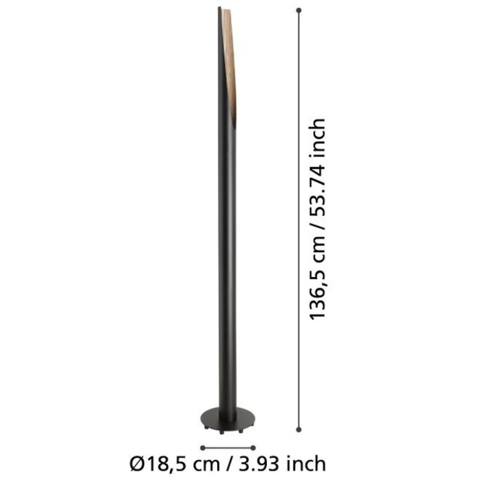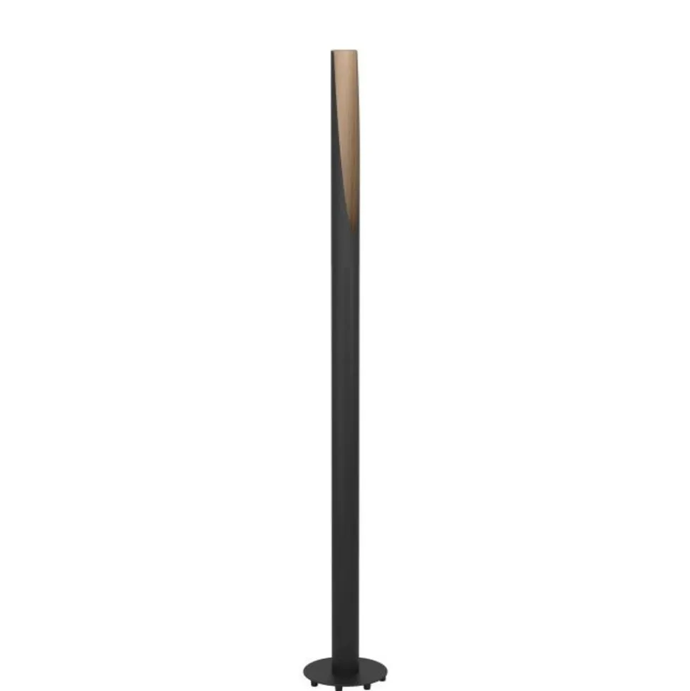 Deze Barbotto LED staande lamp bestaat uit een zwart metalen lichaam met een houten afwerking binnenin. De 137cm hoge staanlamp straalt indirect aangenaam warm wit licht de kamer in. De afgeschuinde bovenkant van de lamp maakt een blik in het elegante interieur van sandelhoutlook mogelijk. Aan- en uitschakeling is mogelijk via een voetschakelaar op de kabel. Door het edele en rechte ontwerp geeft de lamp elke ruimte een sfeervol en elegant licht. De GU10 LED lamp is inbegrepen.