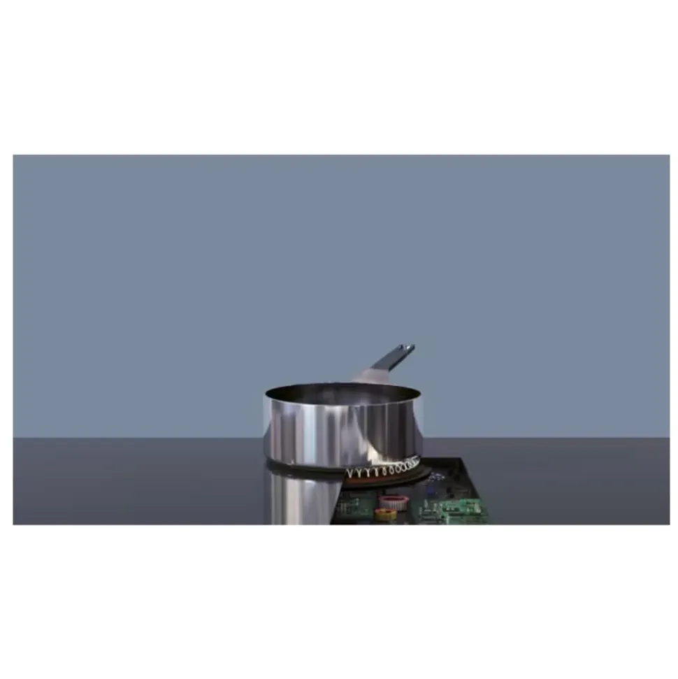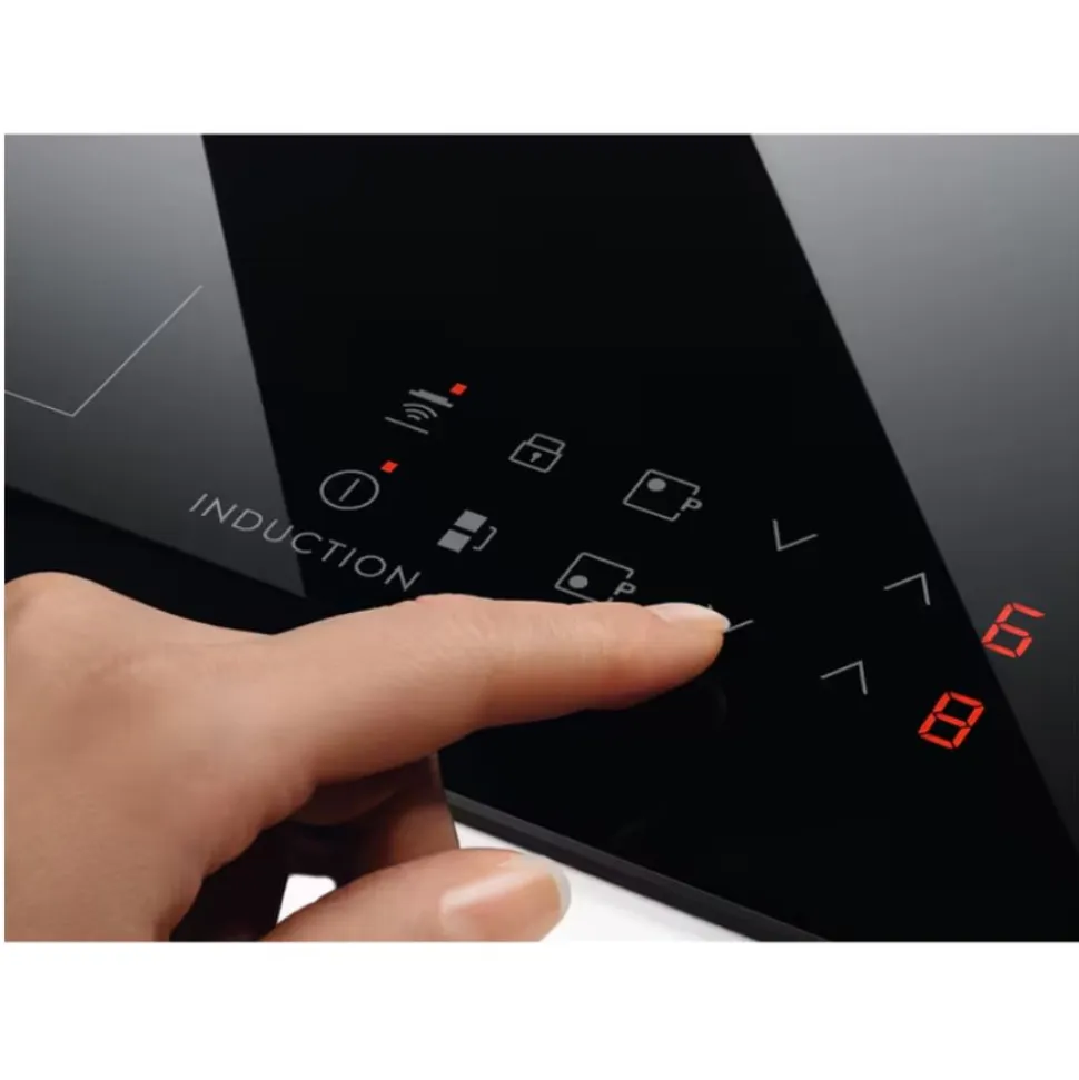 Inductietechnologie betekent dat de warmte snel wordt geleverd en precies op de juiste plek, waardoor de omliggende zones koel en veilig blijven. Deze reageert ook direct op temperatuurveranderingen. Het gladde oppervlak is bovendien gemakkelijk te reinigen.