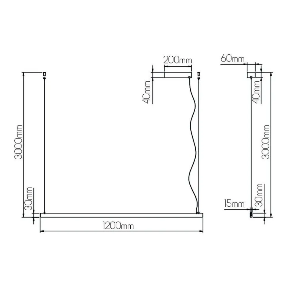 Fantasia GURI LED pendel 38W 3000K 1200mm zwart dimbaar (3m kabel incl)