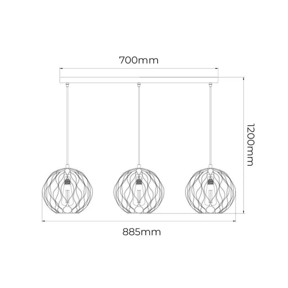 Fantasia ONDA pendel 3x E27 zwart + geborsteld goud