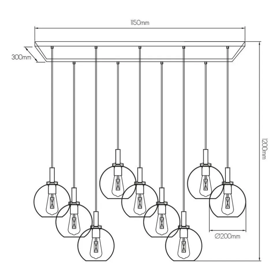 Fantasia OSIRA Pendel E27 9L Zwart, helder glas 9x Ø200mm