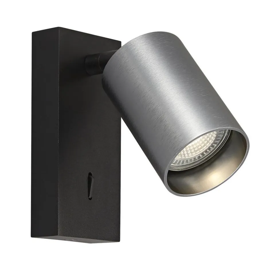 Fantasia TABOO 1L GU10 (excl) zwart + geborsteld staal, wand licht +schakelaar