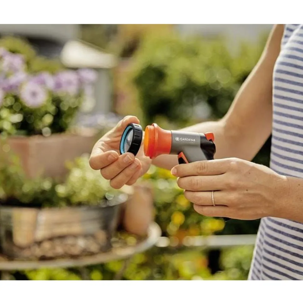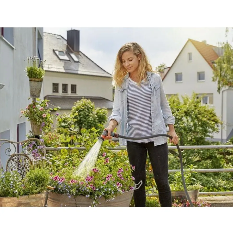 De GARDENA stadstuinsproeier voor balkonbesproeiing heeft een handige en compacte vorm en dankzij het beperkte waterdebiet een bijzonder zachte besproeiing, waardoor besproeiing mogelijk is die niet schadelijk is voor de planten. De ergonomische handgreep met onderdelen van zachte kunststof zorgt voor optimaal gebruikscomfort tijdens het gebruik. De waterdoorstroming kan traploos worden ingesteld. De geïntegreerde vergrendeling van de triggerknop is bijzonder ergonomisch en voorkomt vermoeidheid van de hand. Met geïntegreerde vorstbeveiligingstechnologie. De totale garantieperiode bedraagt 5 jaar.