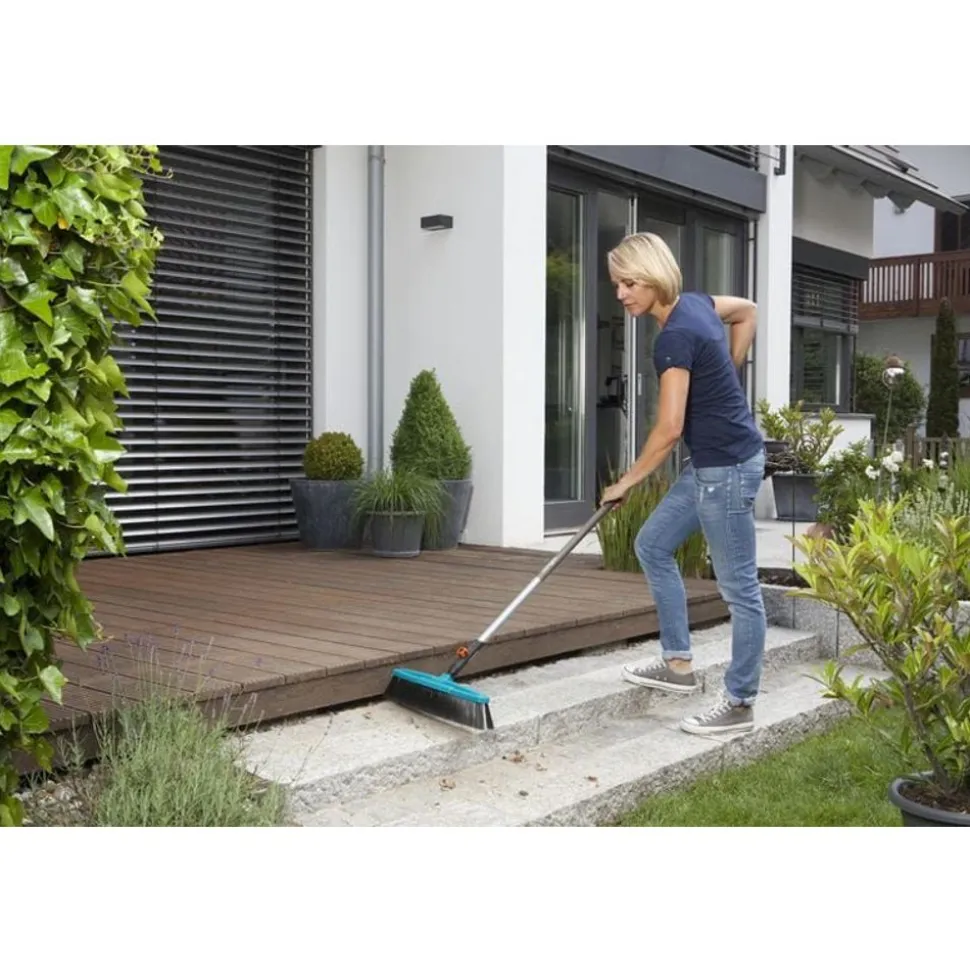 De GARDENA combisystem-straatbezem is ideaal voor gebruik in de tuin en rondom het huis. Met een werkbreedte van 45 cm en een slagvaste kop van hoogwaardige kunststof kan de robuuste bezem voor verschillende doeleinden worden gebruikt. Hoogwaardige en gladde harde en zachte borstelharen van polypropyleen zorgen voor een optimaal schoonmaakresultaat en efficiënt werken. Een geïntegreerde schraaprand boven de bezem zorgt voor moeiteloos verwijderen van ingetrapt vuil of vochtige bladeren. De straatbezem is geschikt voor alle GARDENA combisystem-stelen, waarbij GARDENA een steellengte van 130 of 150 cm adviseert, afhankelijk van de lichaamslengte. De garantieperiode is 25 jaar.