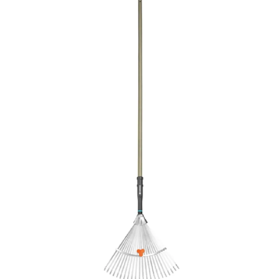 The GARDENA NatureLine Adjustable Rake is perfect for raking up leaves, grass cuttings, aerated material and other garden waste. In order to be able to rake fine and coarse material, the galvanised spring steel tines can simply be adjusted from 30 to 50 cm. The varnished handle made from beechwoo